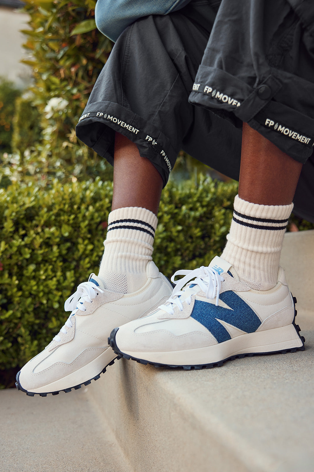 Retro-inspired styling defines the 327 Sneaker by New Balance featuring a denim logo detail. flared midsole. and high-traction lugged outsole.