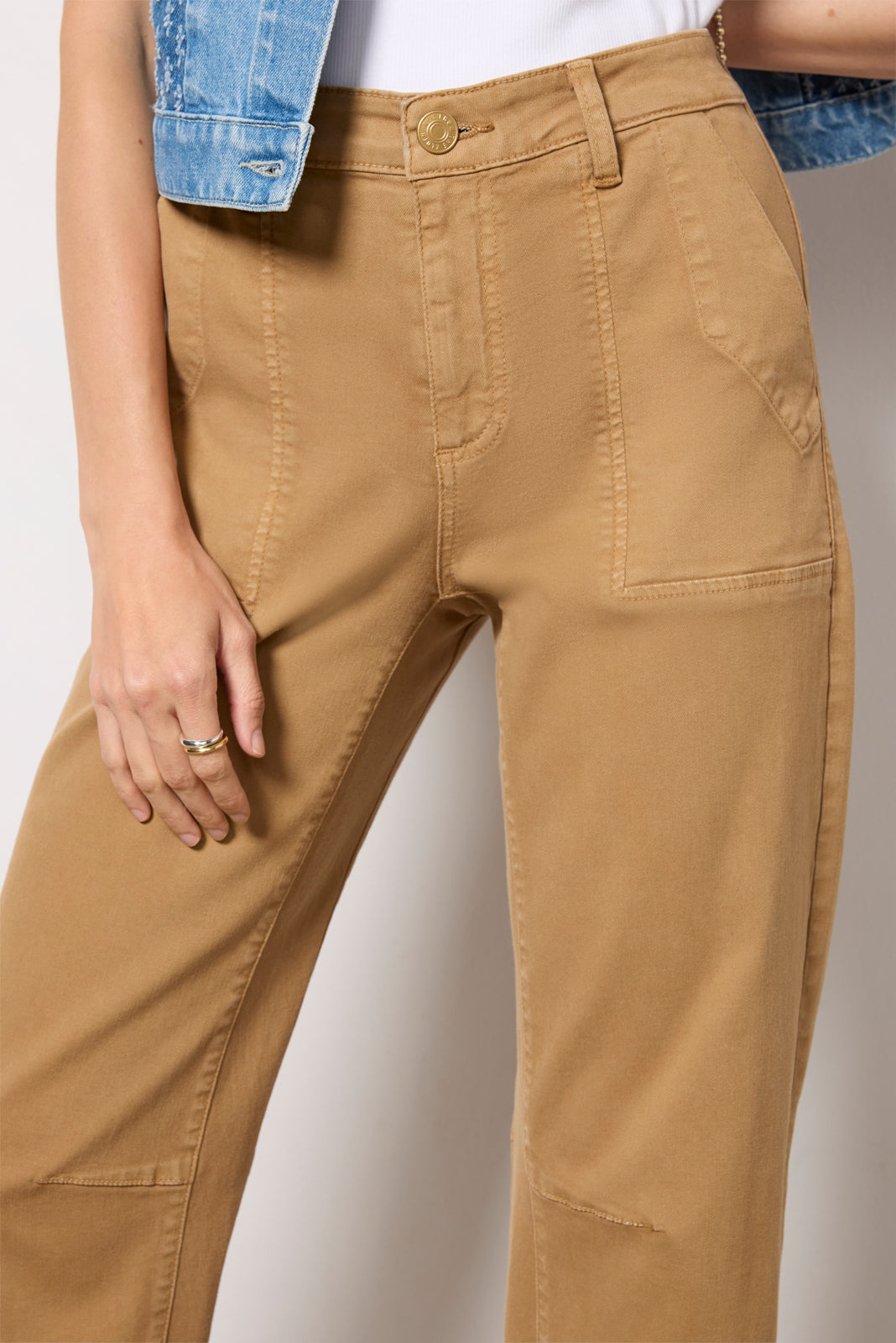 Add a touch of utility-inspired style to your wardrobe with the Ashton barrel leg pant by KUT from the Kloth. Finished with darting at the knees. these high-rise pants feature a relaxed fit. cropped hems. and utility pockets at the front and back.