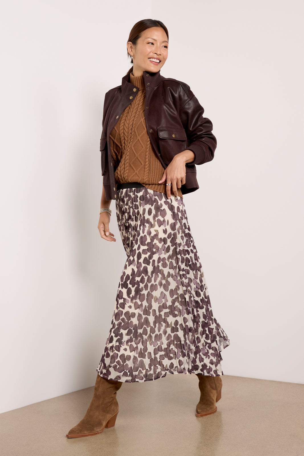 An effortlessly chic layer. this aviator jacket by EVEREVE will instantly elevate your wardrobe. This classic bomber silhouette is crafted in soft faux leather and features a front snap closure. stand collar. and rib knit trim. Wear it all season long with any day-to-night look.