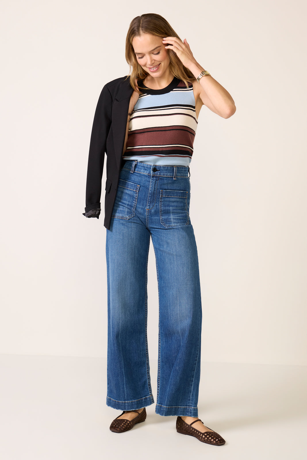 Elevate your day-to-night wardrobe with the Bay?tank top by EVEREVE. This striped sweater tank features a sleeveless silhouette. crew neckline. and slightly cropped length??perfect for wearing alone or under your favorite layer.