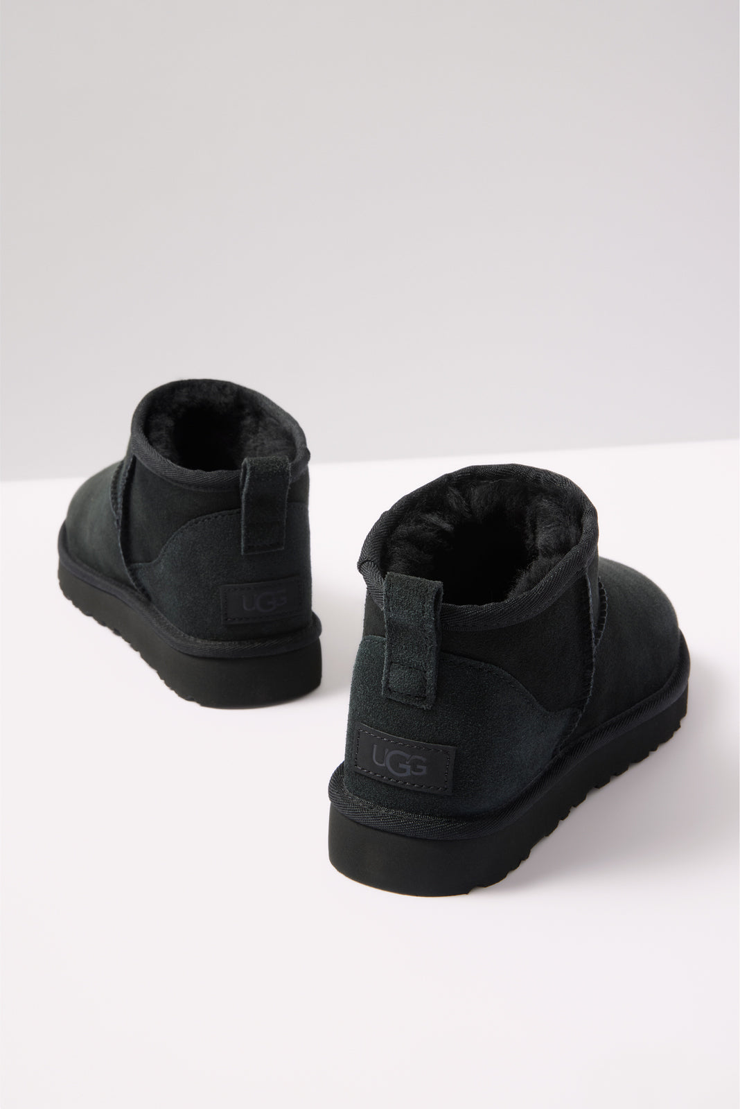 A modern take on the iconic silhouette. the UGG® Classic Ultra Mini boot features a low shaft height for easy on-and-off and a soft sheepskin exterior that’s been pre-treated to protect against water. Finished with their signature plush lining. you’ll be wearing them all season long.