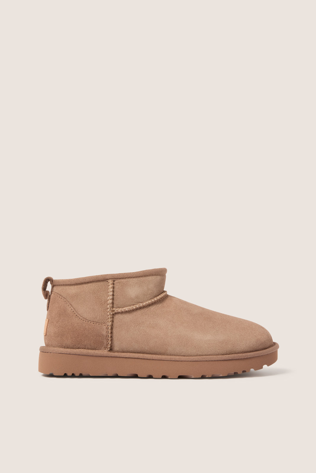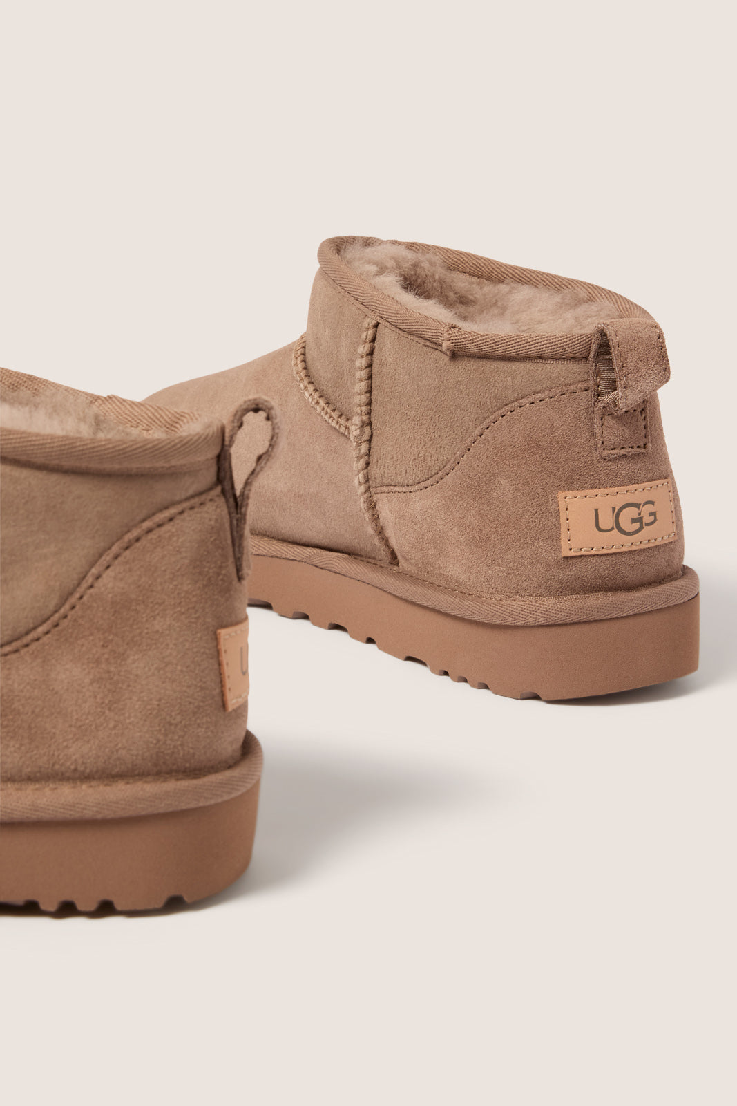 A modern take on the iconic silhouette. the UGG? Classic Ultra Mini boot features a low shaft height for easy on-and-off and a soft sheepskin exterior that’s been pre-treated to protect against water. Finished with their signature plush lining. you’ll be wearing them all season long.