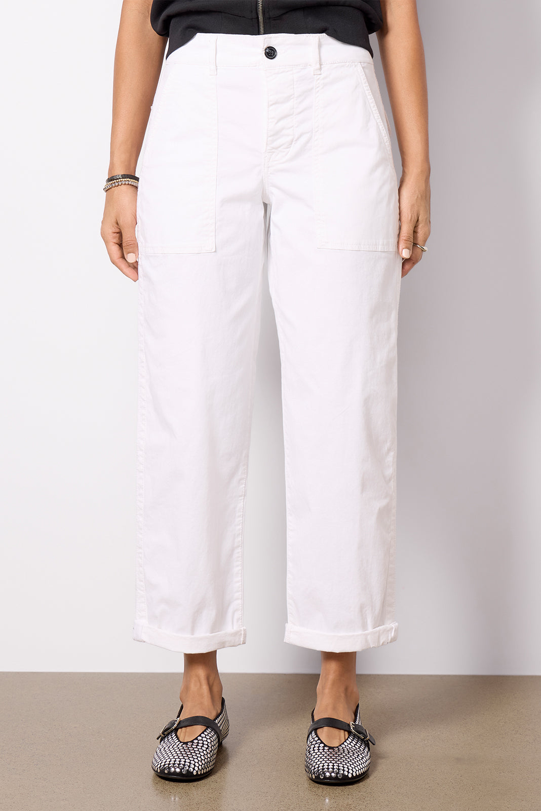 Utility-style pockets detail the Cruiser Chino pants by Sanctuary. featuring a slight barrel leg shape with rolled hems—perfect for dressing up or down.
