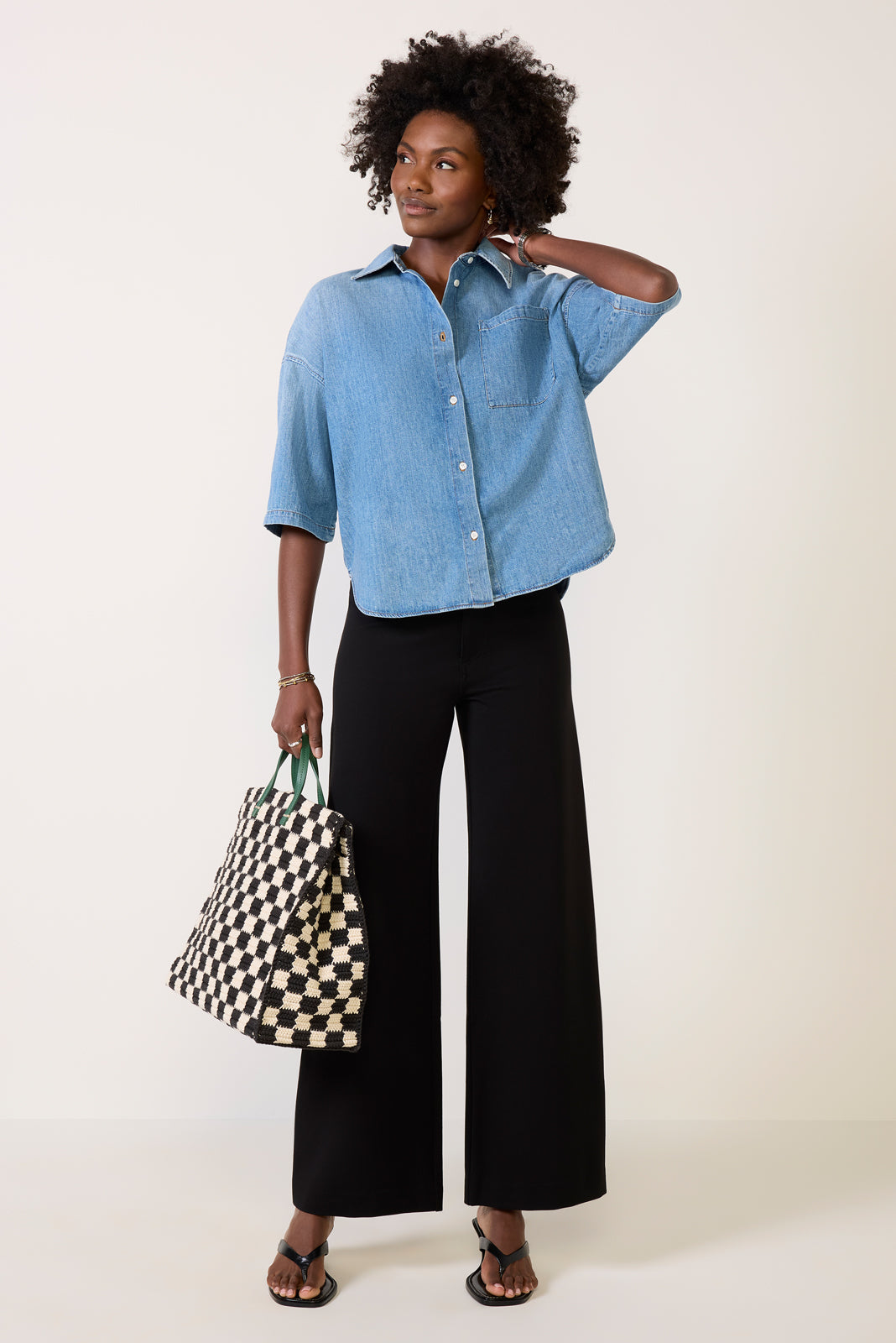 Made to move with you from workday to date night. these wide leg pants by Z Supply are crafted from midweight stretch ponte fabric and feature a high-rise fit. full-length inseam. and back patch pockets.