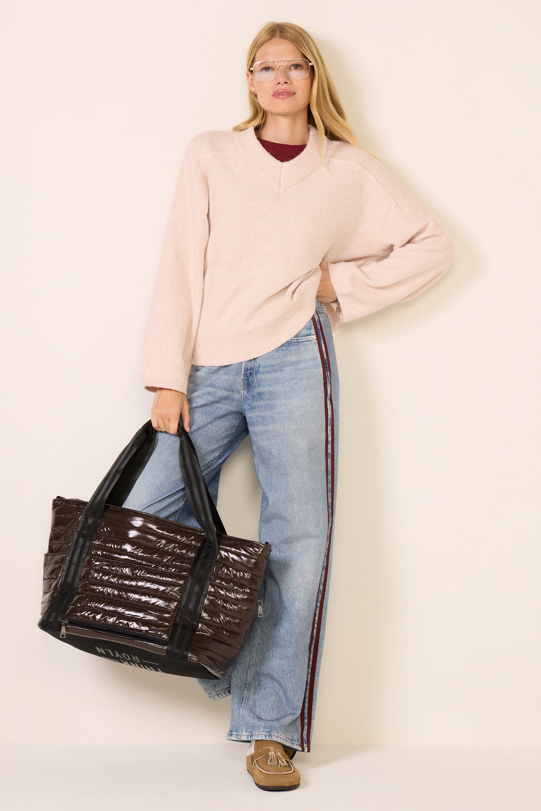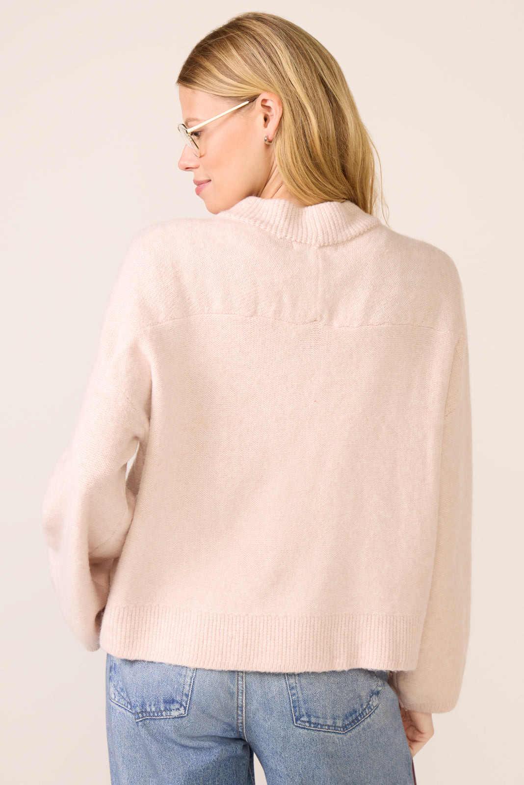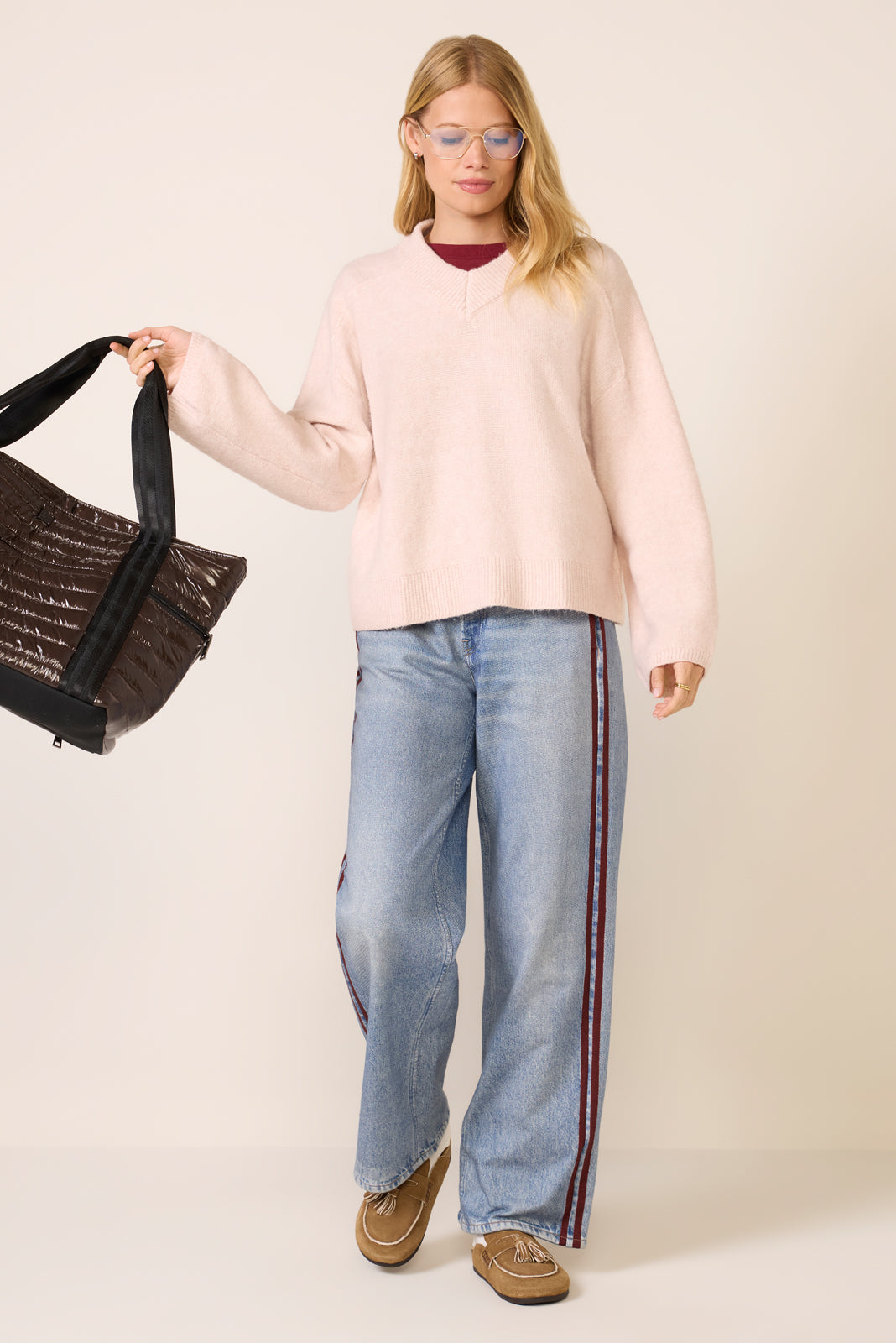 Cozy up to this stylish pullover sweater by Sanctuary. crafted in an ultra-soft knit with a high V-neckline. relaxed fit. and roomy long sleeves.