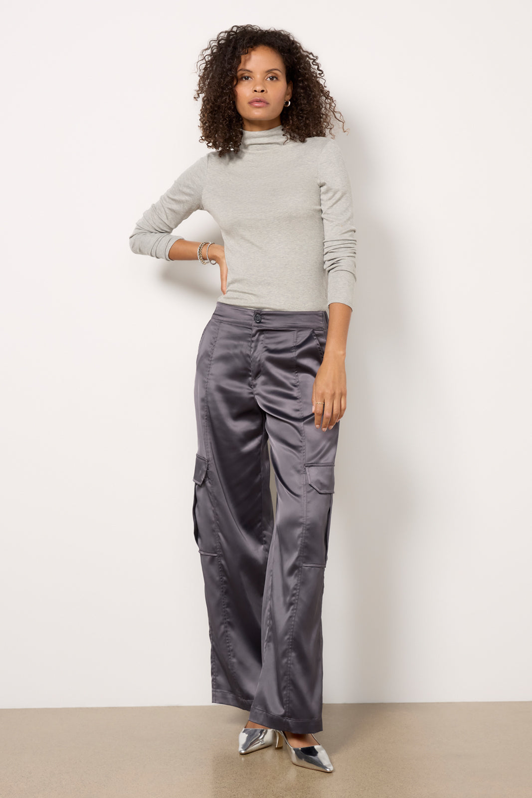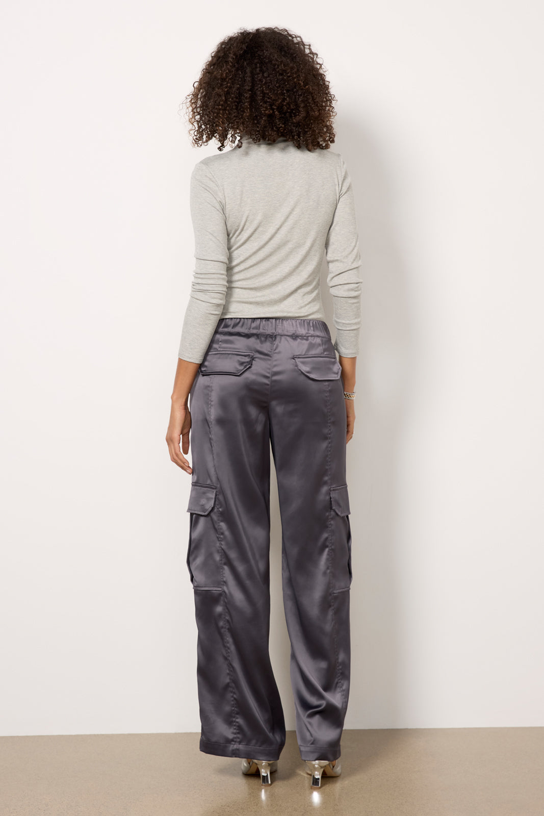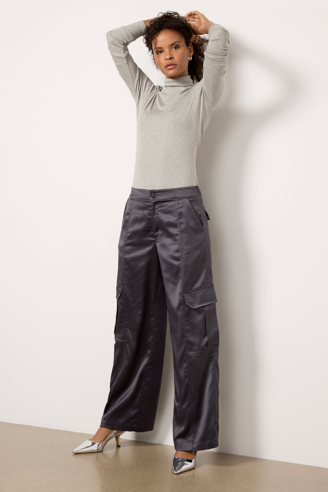 Elevate your next night-out look with these satin cargo pants by Sanctuary. Topped with utility-style pockets. these wide leg pants feature a flattering high-rise. back elastic waist. and full-length hems.