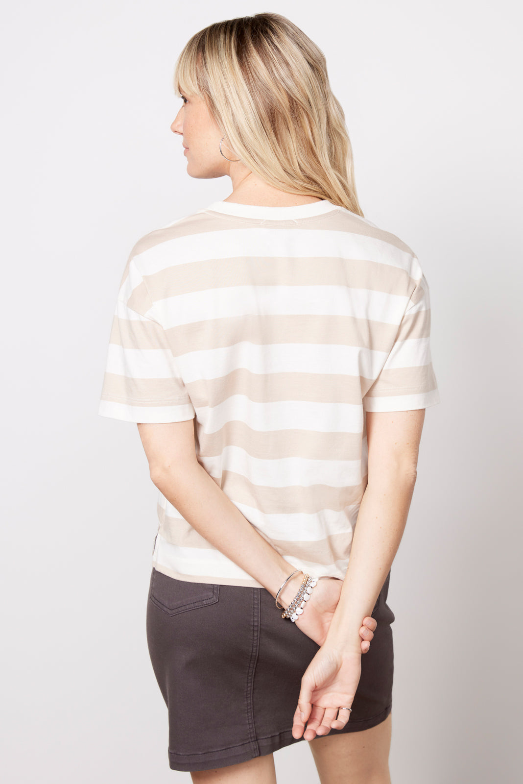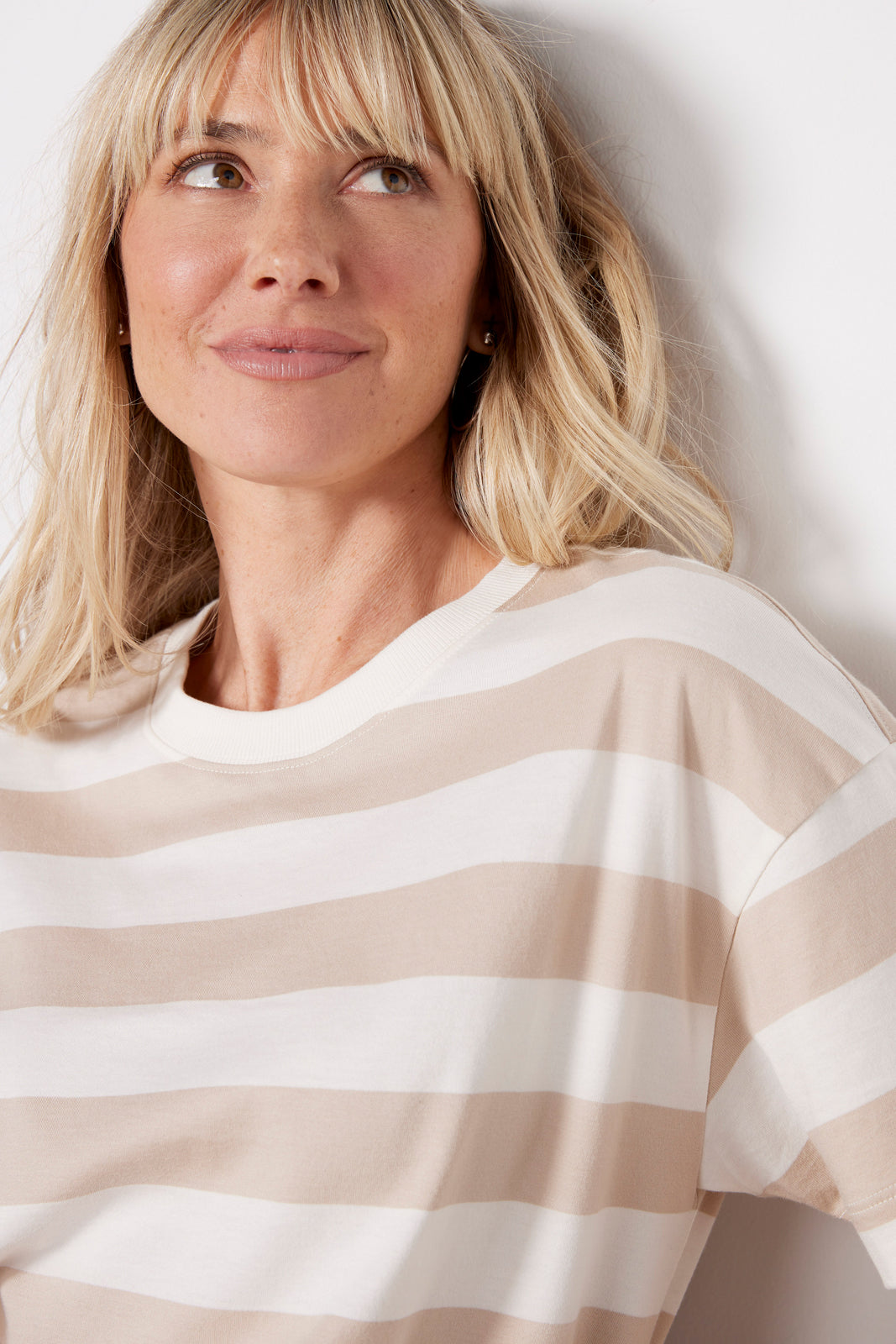 It’s all in the name. This striped tee by EVEREVE is the perfect?summer essential. featuring a relaxed. slightly cropped silhouette. short sleeves. and soft Pima cotton fabric. Pair this wear-everywhere staple with jeans. shorts. or cargo pants.