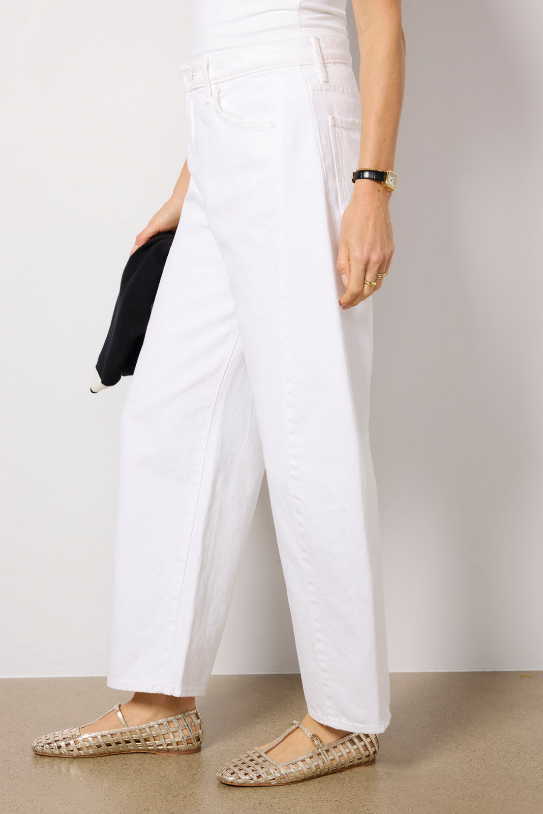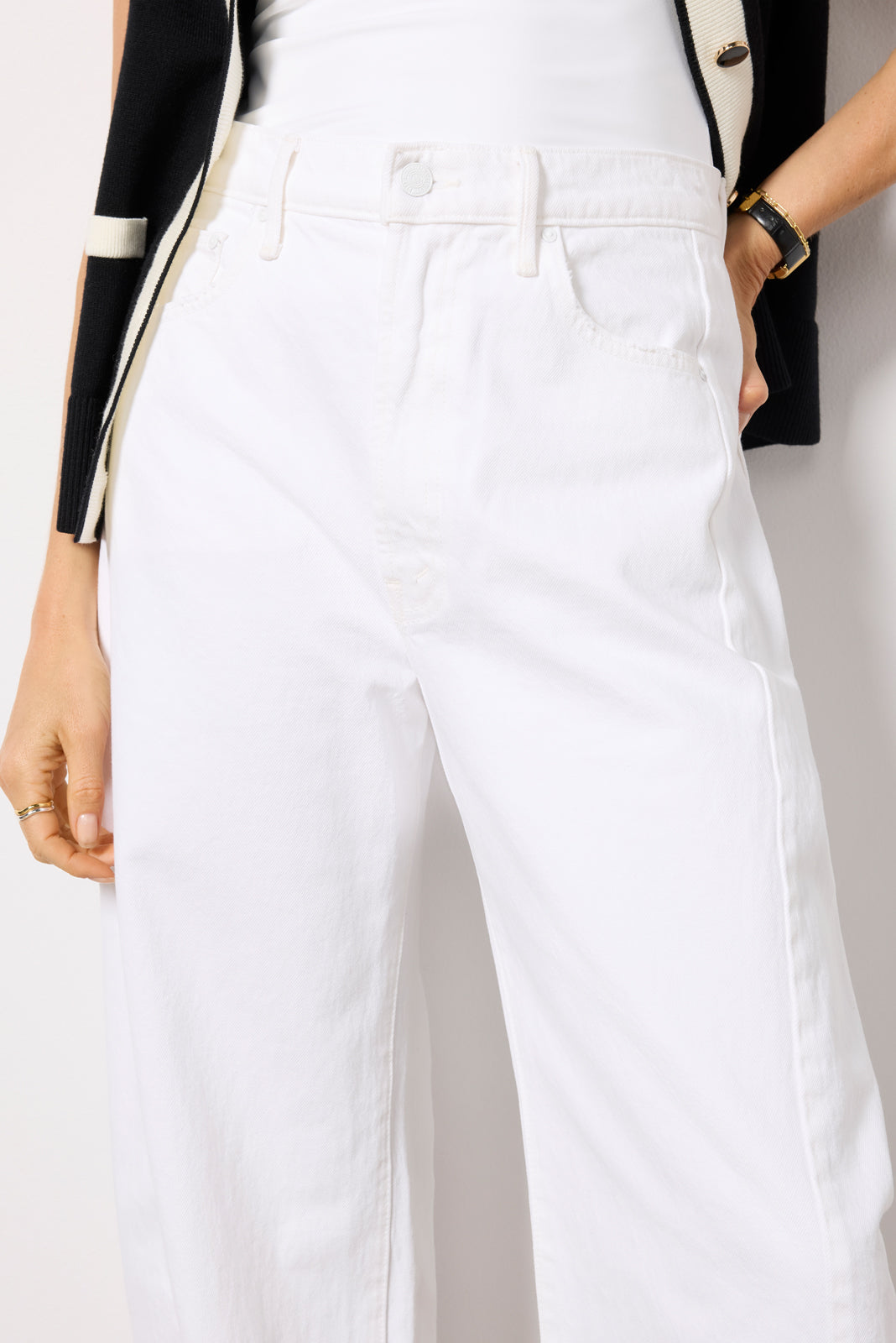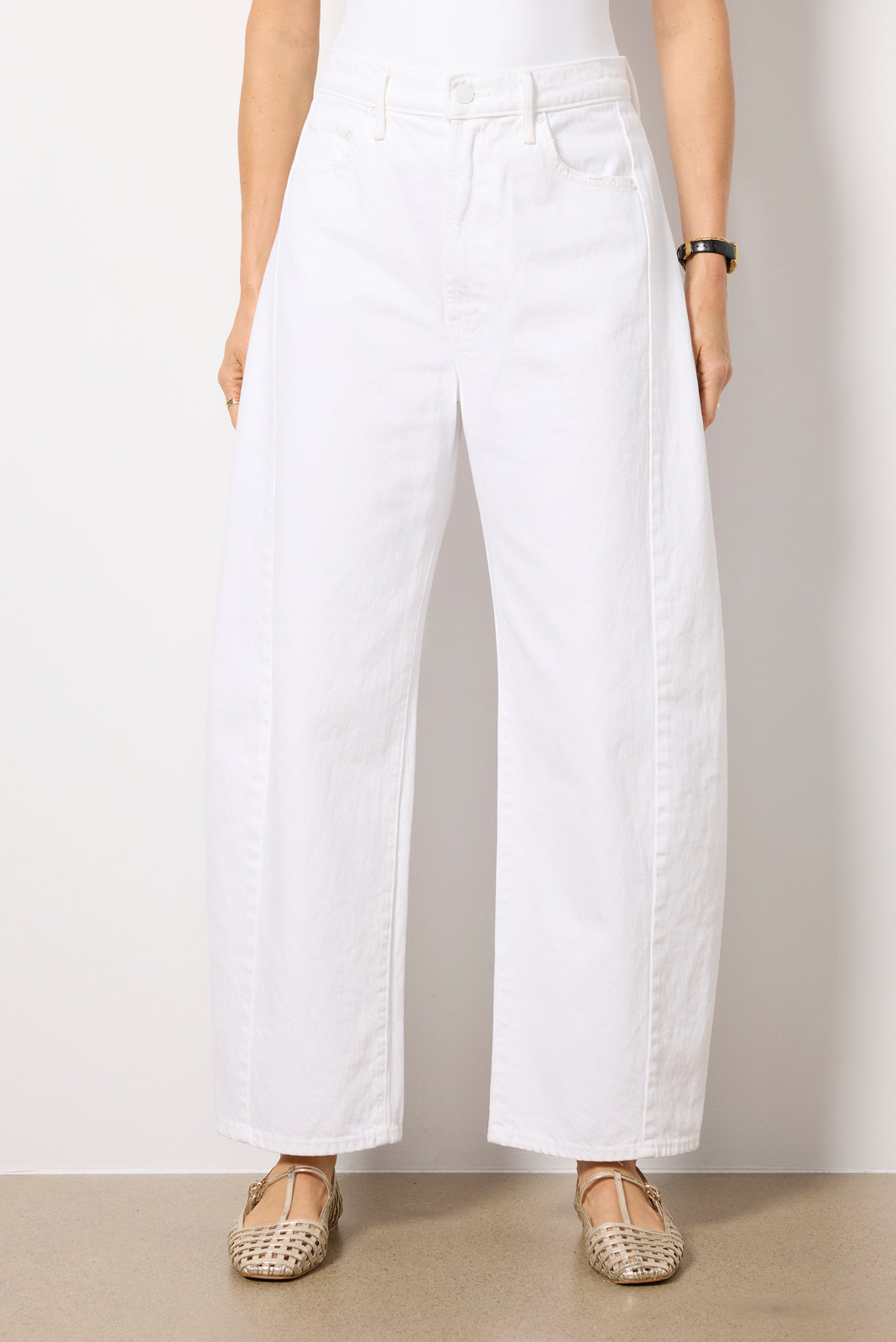 Finished in a bright white wash. the Full Pipe Ankle barrel jean by MOTHER is crafted in rigid. non-stretch cotton denim and features a high-rise fit. curved wide leg. and clean ankle-length hems.