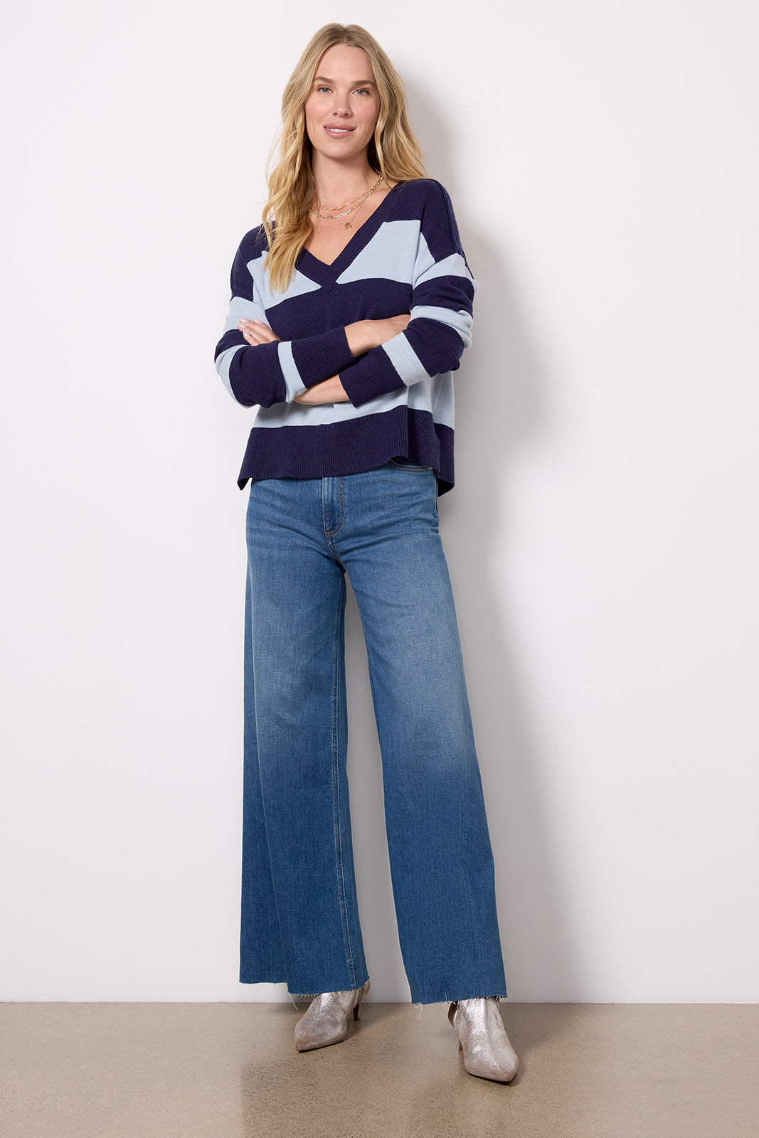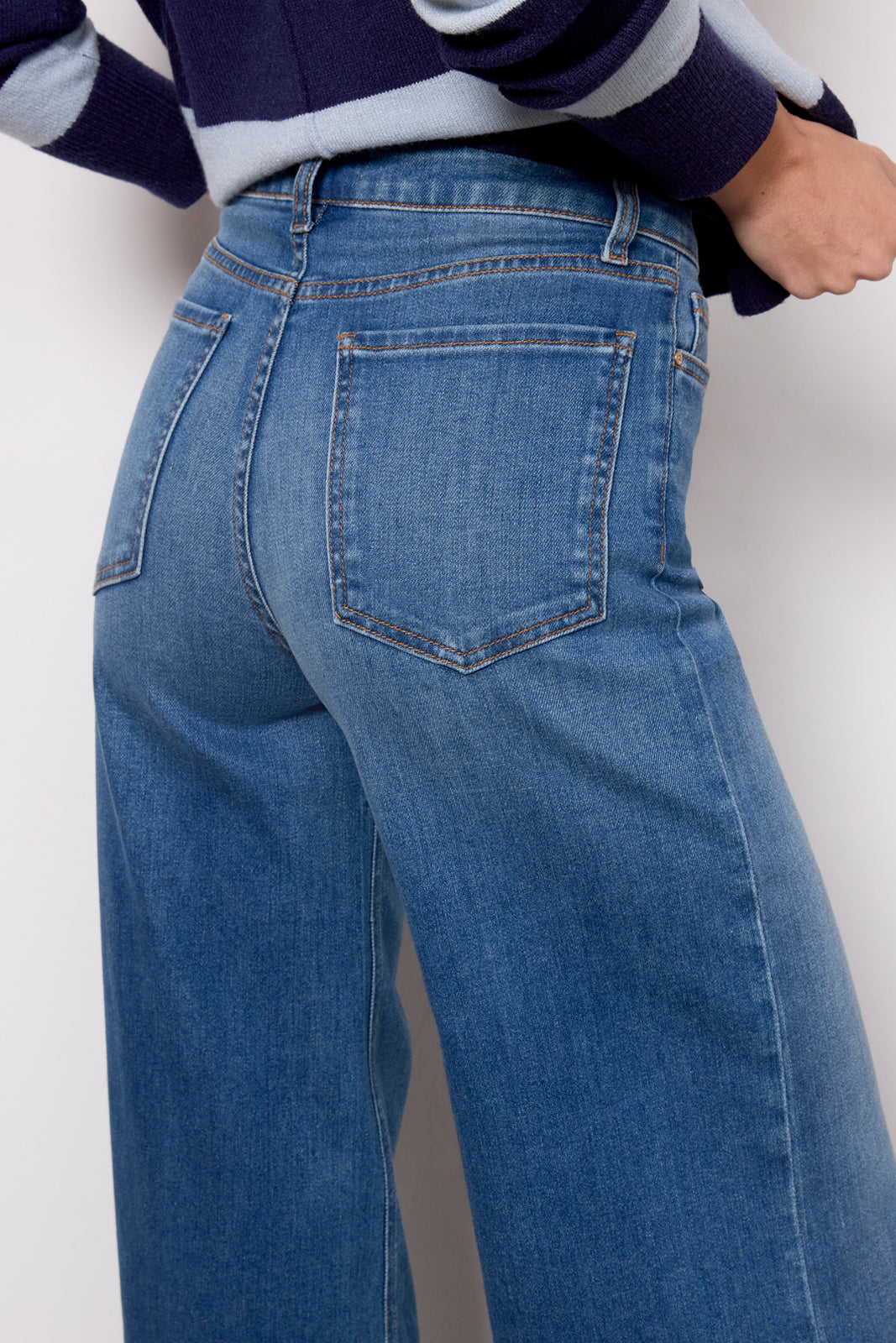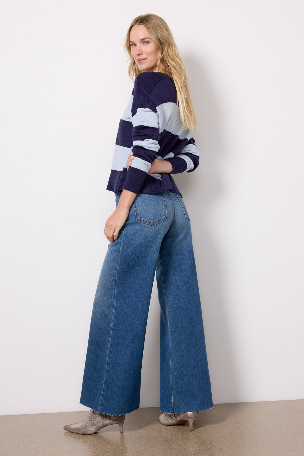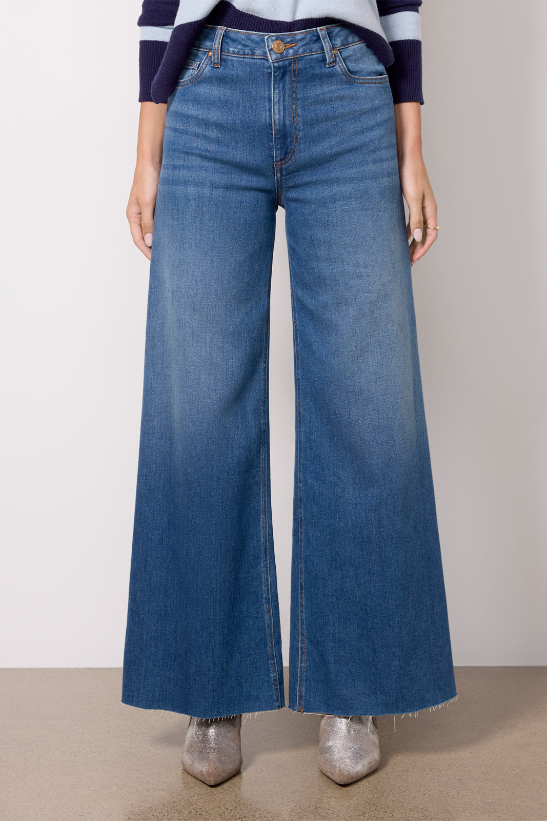 A flared wide leg defines these fun and flattering jeans by Kut From The Kloth. featuring a high-rise waist. raw hems. and soft stretch denim fabric.