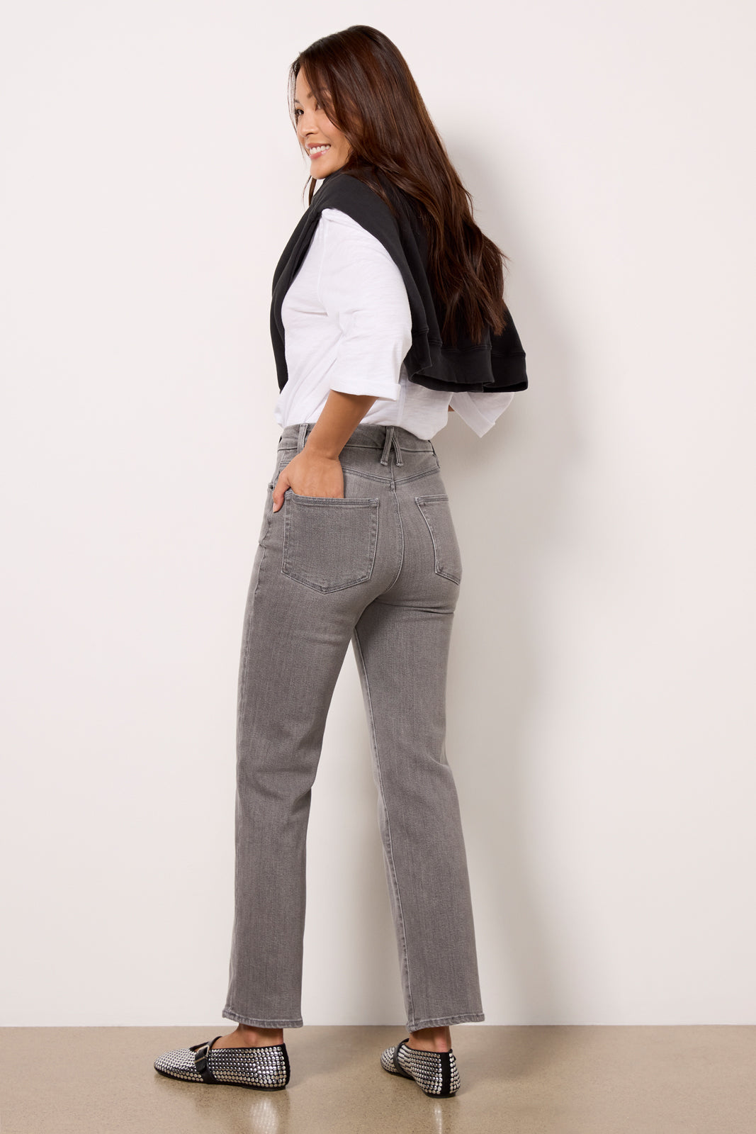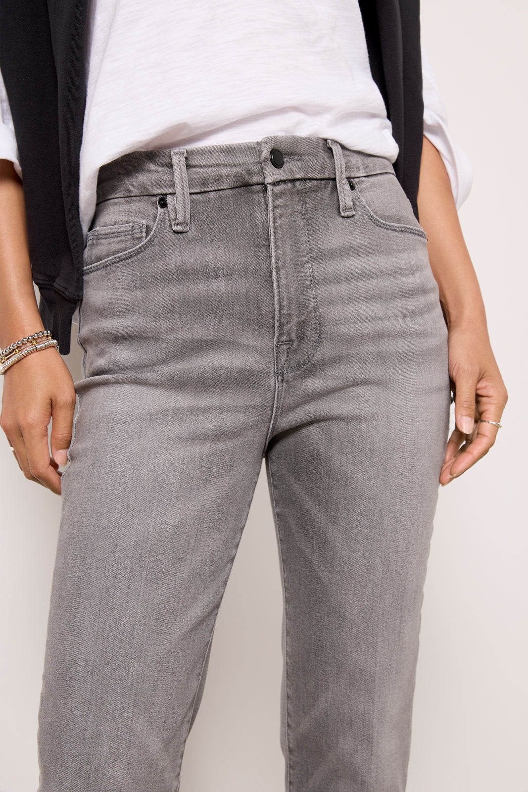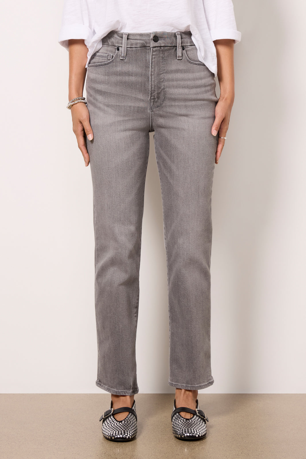 Perfect for day-to-night wear. these straight leg jeans by Good American feature a high-rise waist. ankle-length hems. and soft stretch denim that smooths and sculpts for an always-flattering fit.