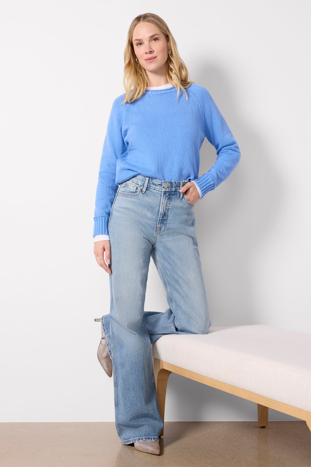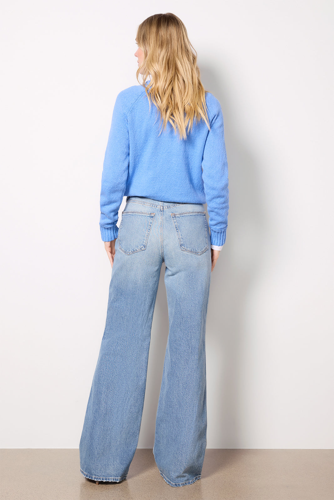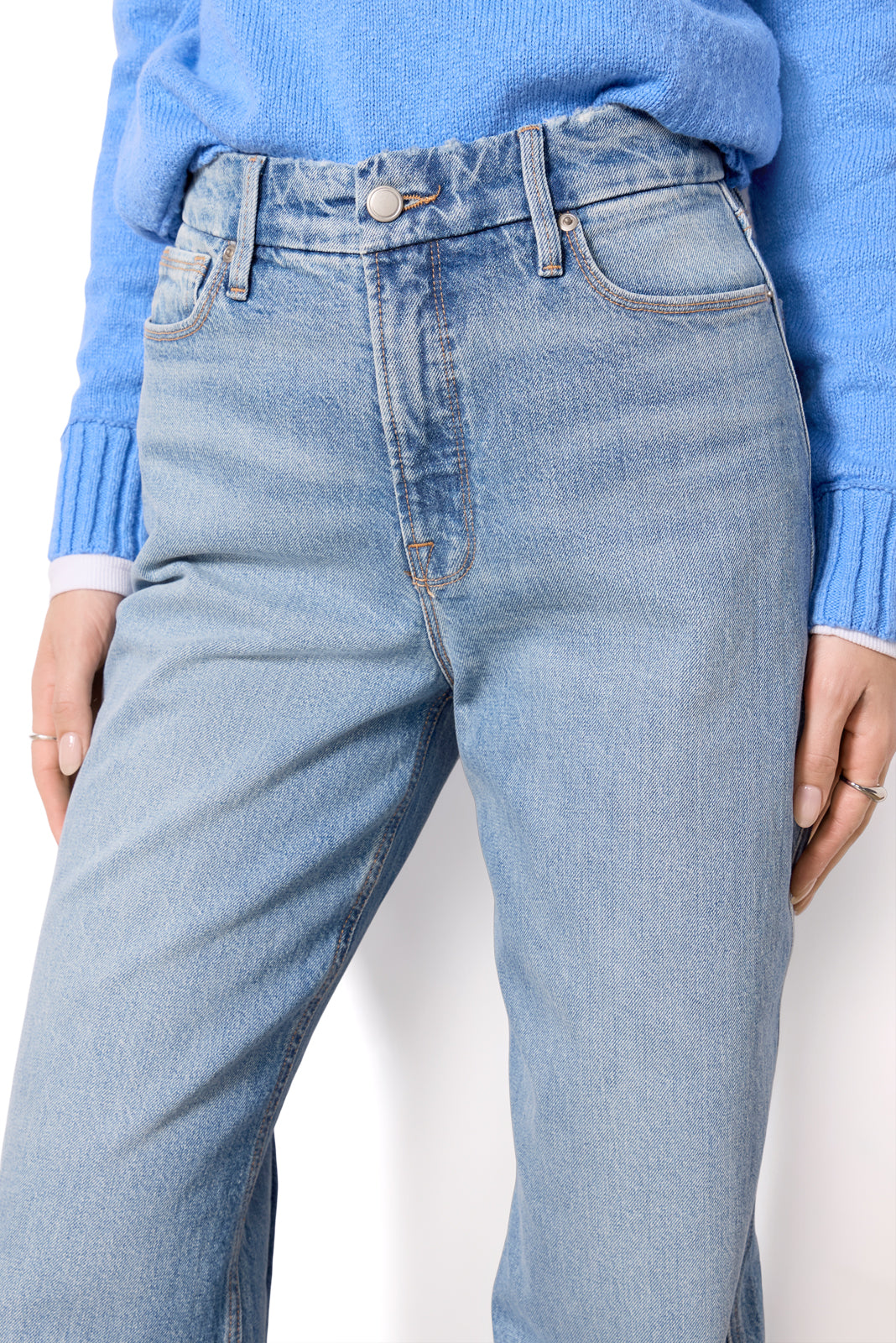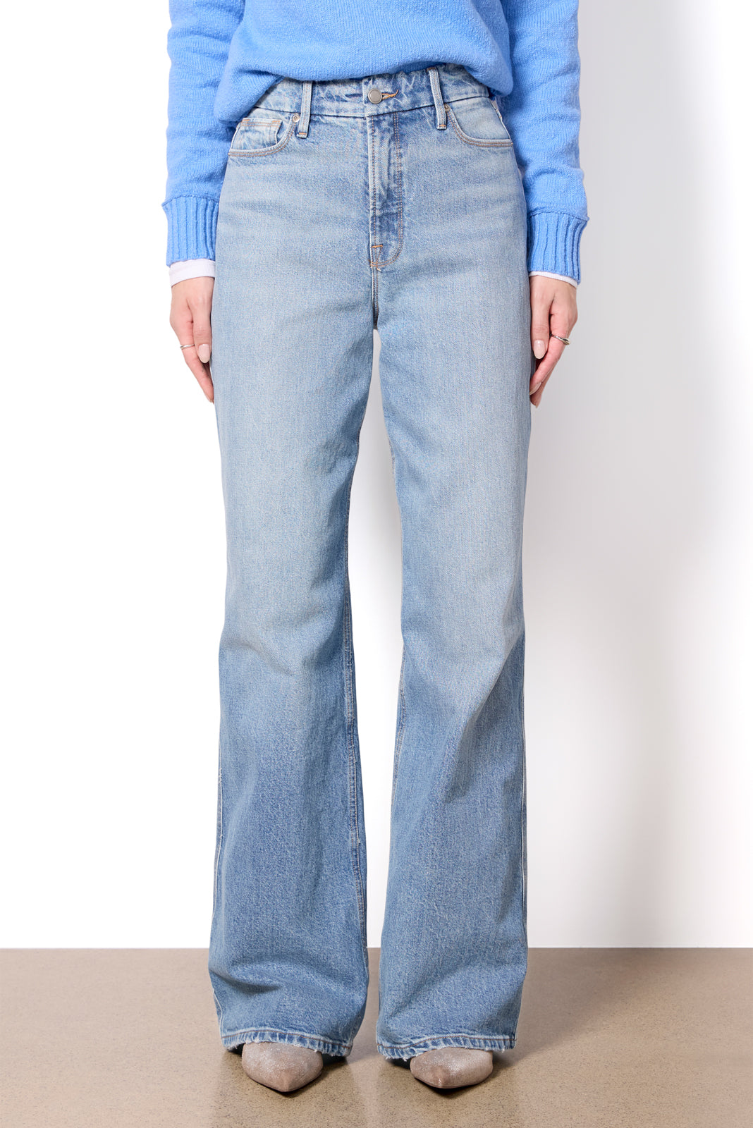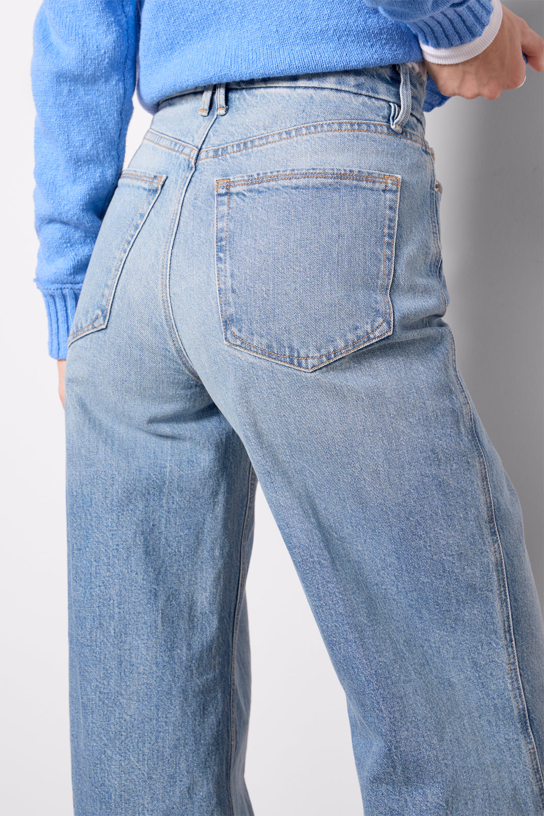 The Good Skate jeans from Good American feature a relaxed wide-leg silhouette. high-rise waist. and versatile blue wash that will take you from day to night.