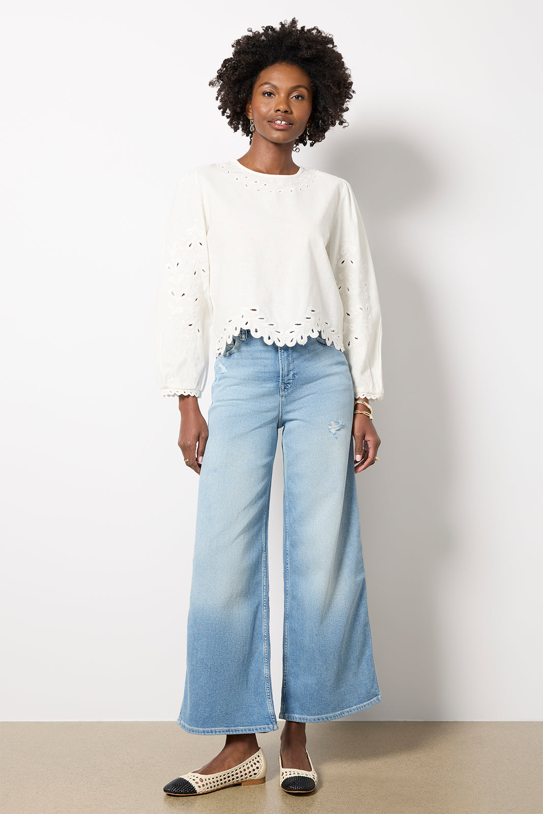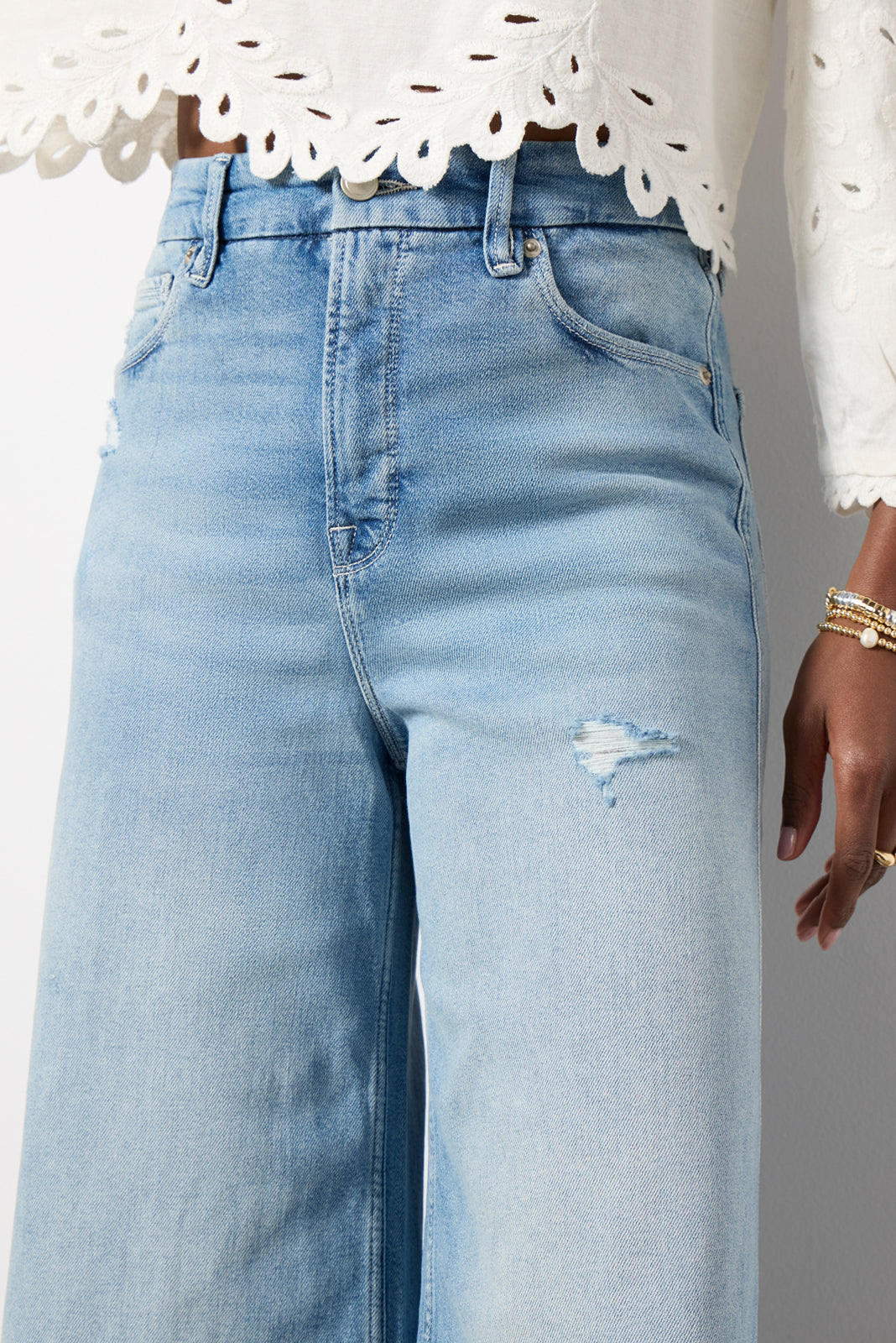 Crafted in a soft stretch denim. the Good Skate Crop features a high-rise fit. a light blue wash with subtle distressing. and a relaxed. wide-leg silhouette.?