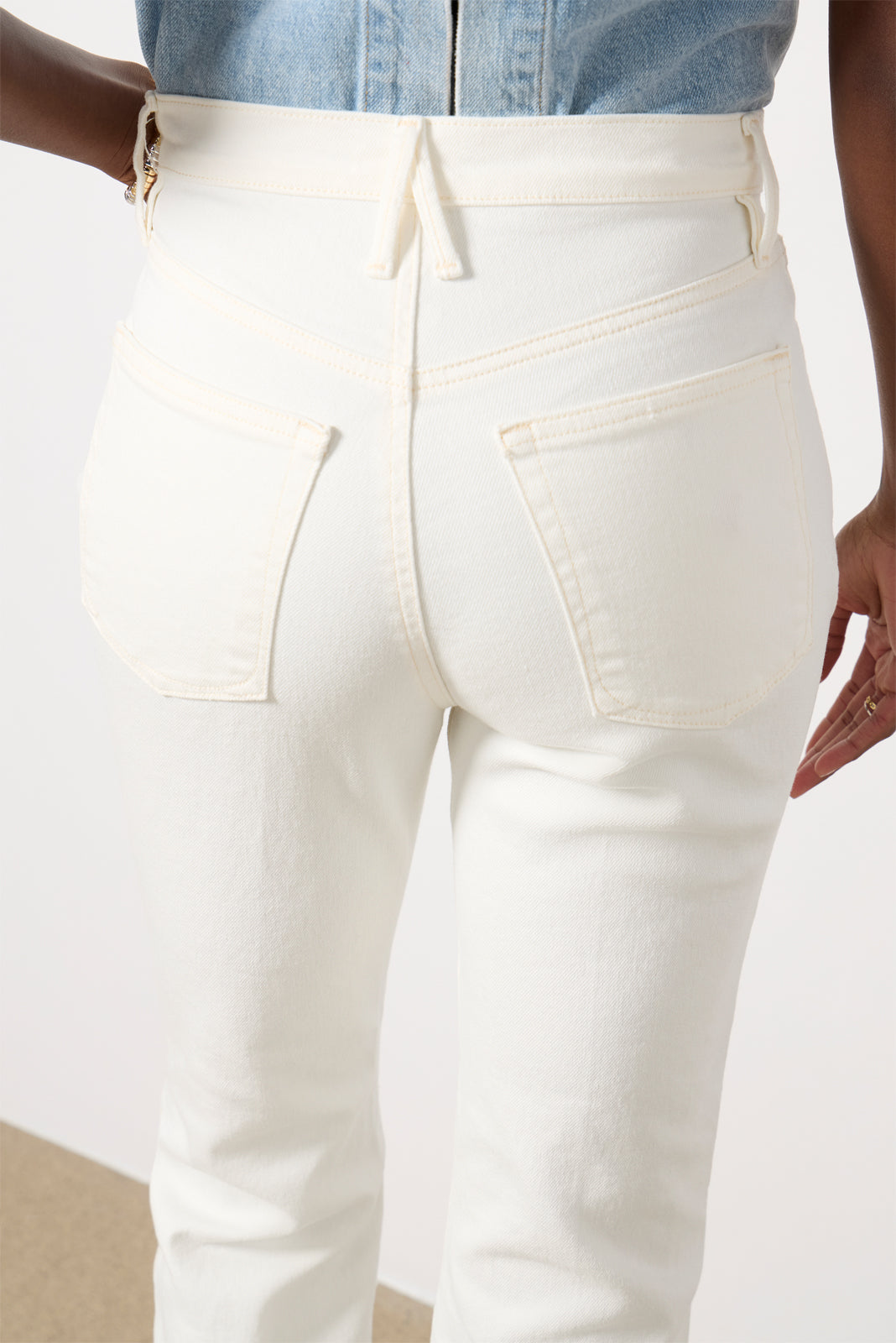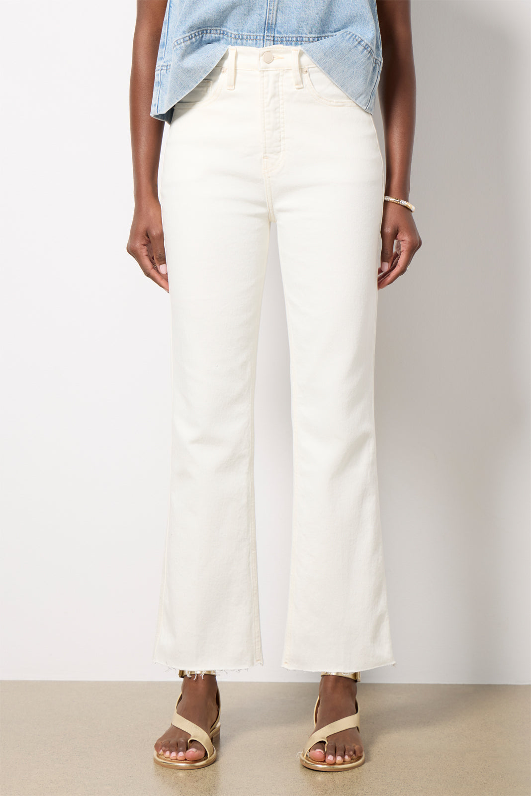 Perfect for everyday wear. these high-rise kick flare jeans by Good American are crafted in?comfortable stretch denim and feature a soft white wash and ankle-length raw hems.