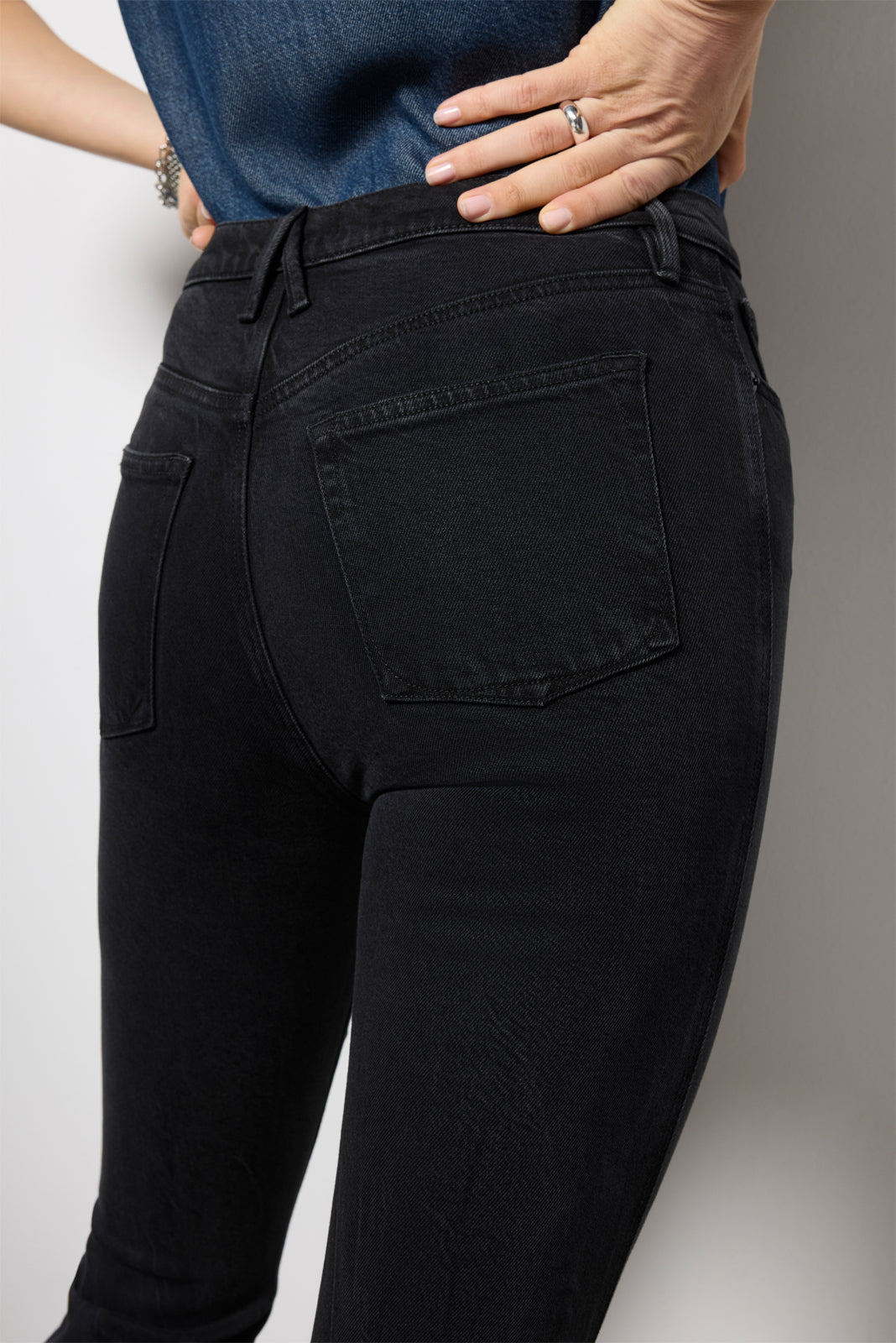 Perfect for everyday wear. these high-rise kick flare jeans by Good American are crafted in soft stretch denim and feature ankle-length hems and a clean black wash.