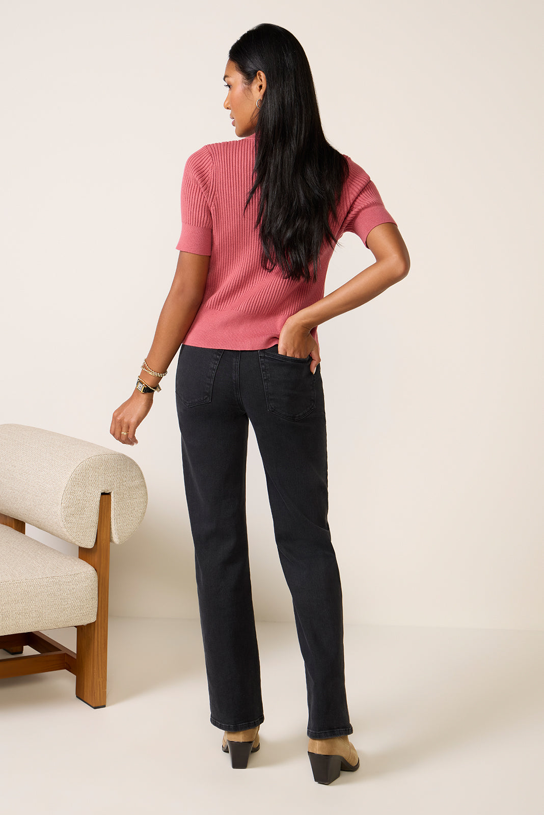 A versatile addition to your denim collection. these straight leg jeans by Good American will be your new go-to. The Good True Straight Jean is crafted in comfortable stretch denim and features a high-rise fit. black wash. and full-length clean hems.