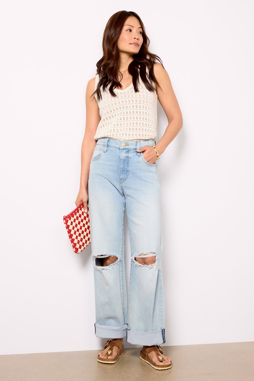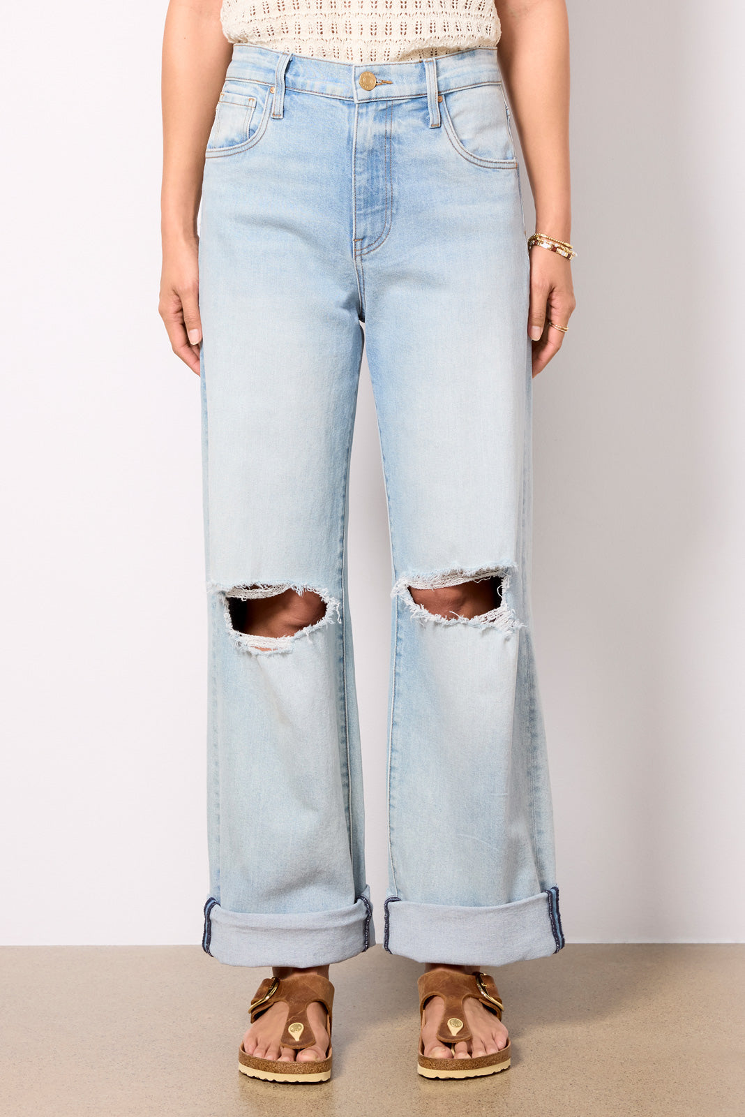 Add to your cuff denim collection with the Gwen Cuff Jean by Kut from the Kloth. featuring a high-rise fit. full-length inseam. and rips on the knees for a lived-in feel.?