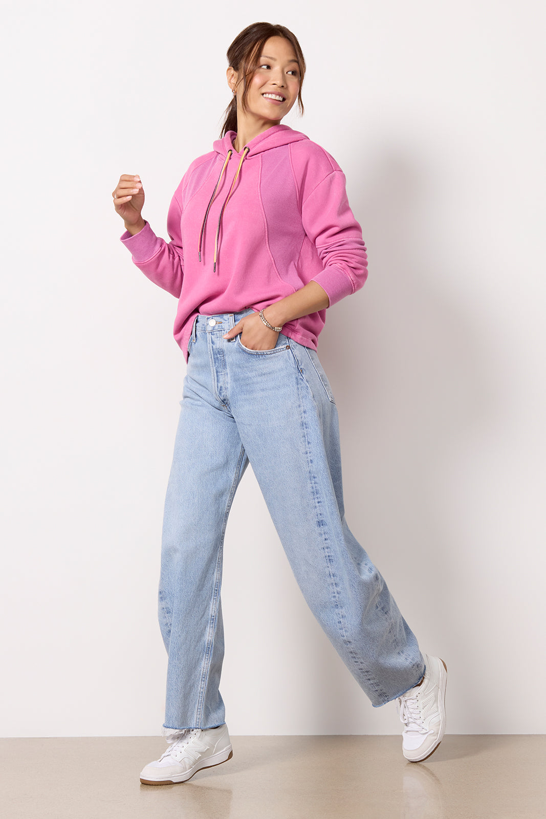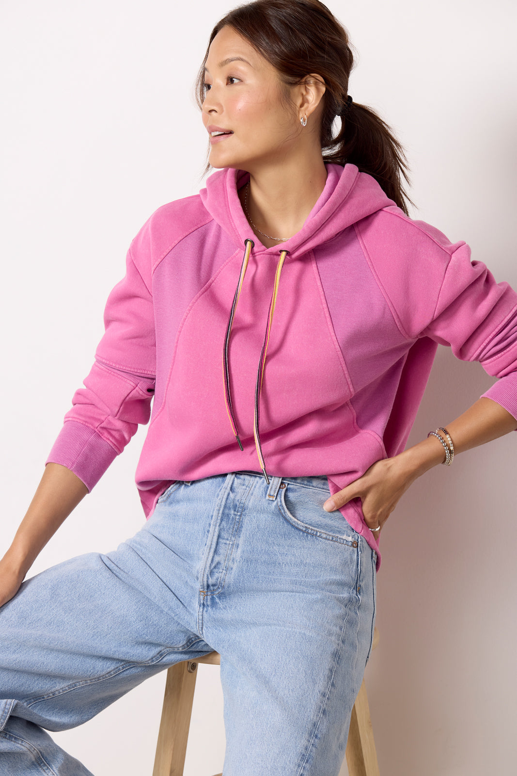 Top off your everyday wardrobe with this easy-to-love hoodie by EVEREVE. The Hallie sweatshirt is crafted in mineral wash fleece fabric and features rib knit insets. raglan sleeves. and?a comfy hood with a multicolor drawstring. Wear it on repeat with your favorite jeans. joggers. and leggings.