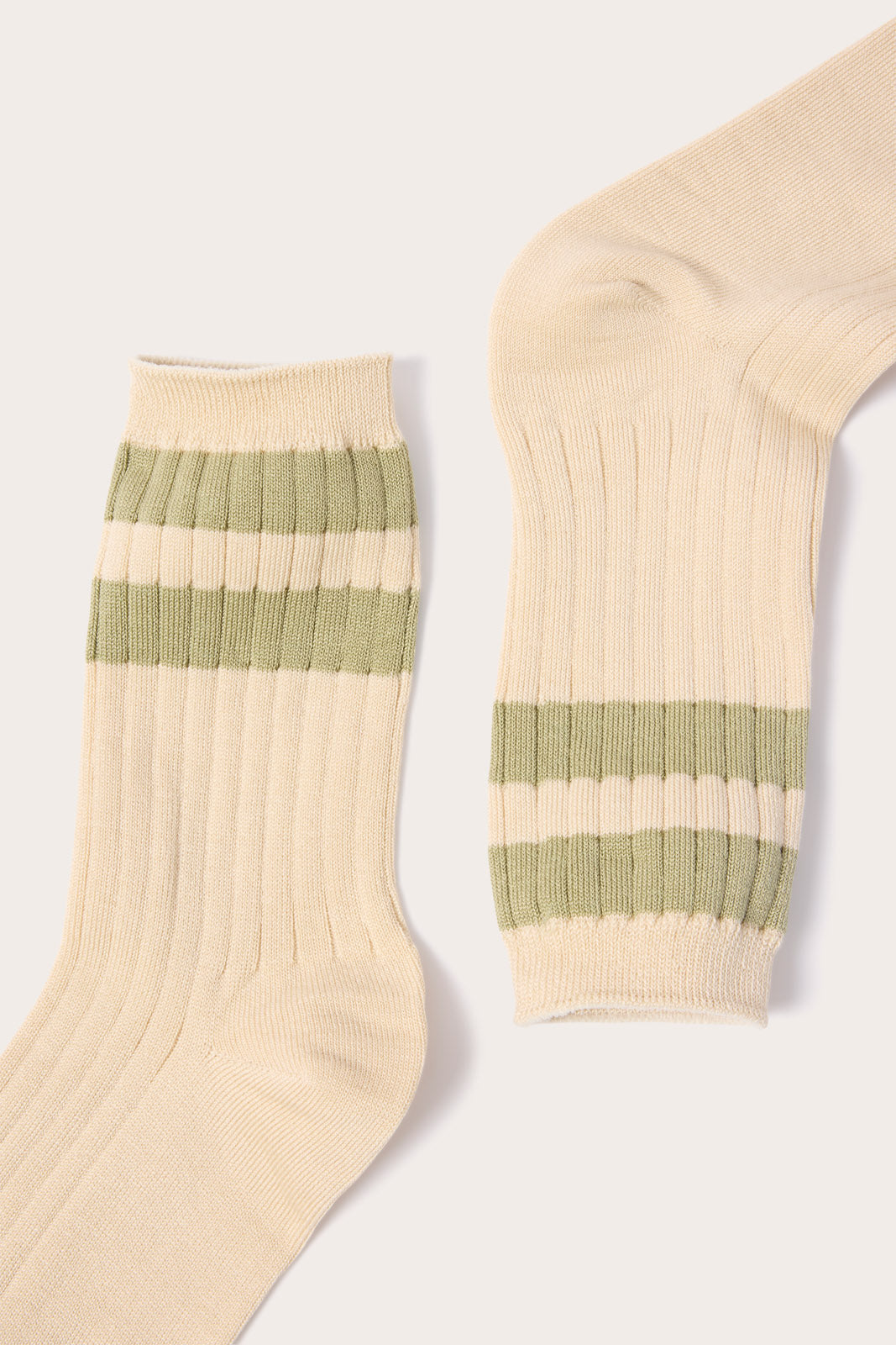 Sporty varsity stripes top these comfy quarter-crew socks by Le Bon Shoppe. crafted in a soft cotton blend with a ribbed design.