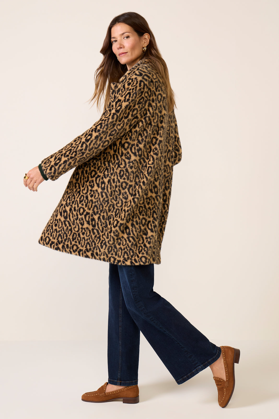 Add bold style to your layering collection with?this leopard print faux fur jacket by Sanctuary. The Hometown Jacket features a longline silhouette with a notched collar. front button closures. and patch pockets.