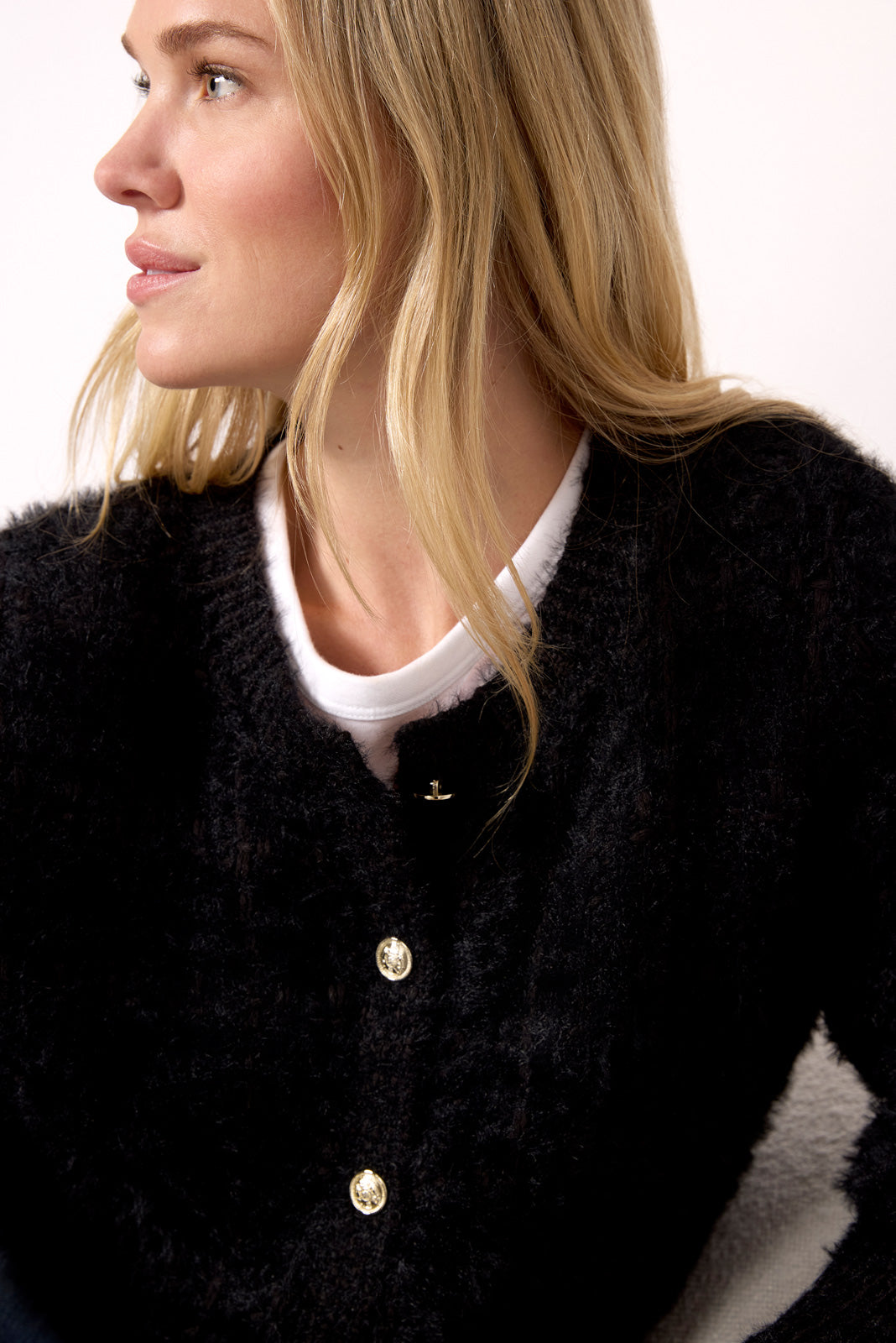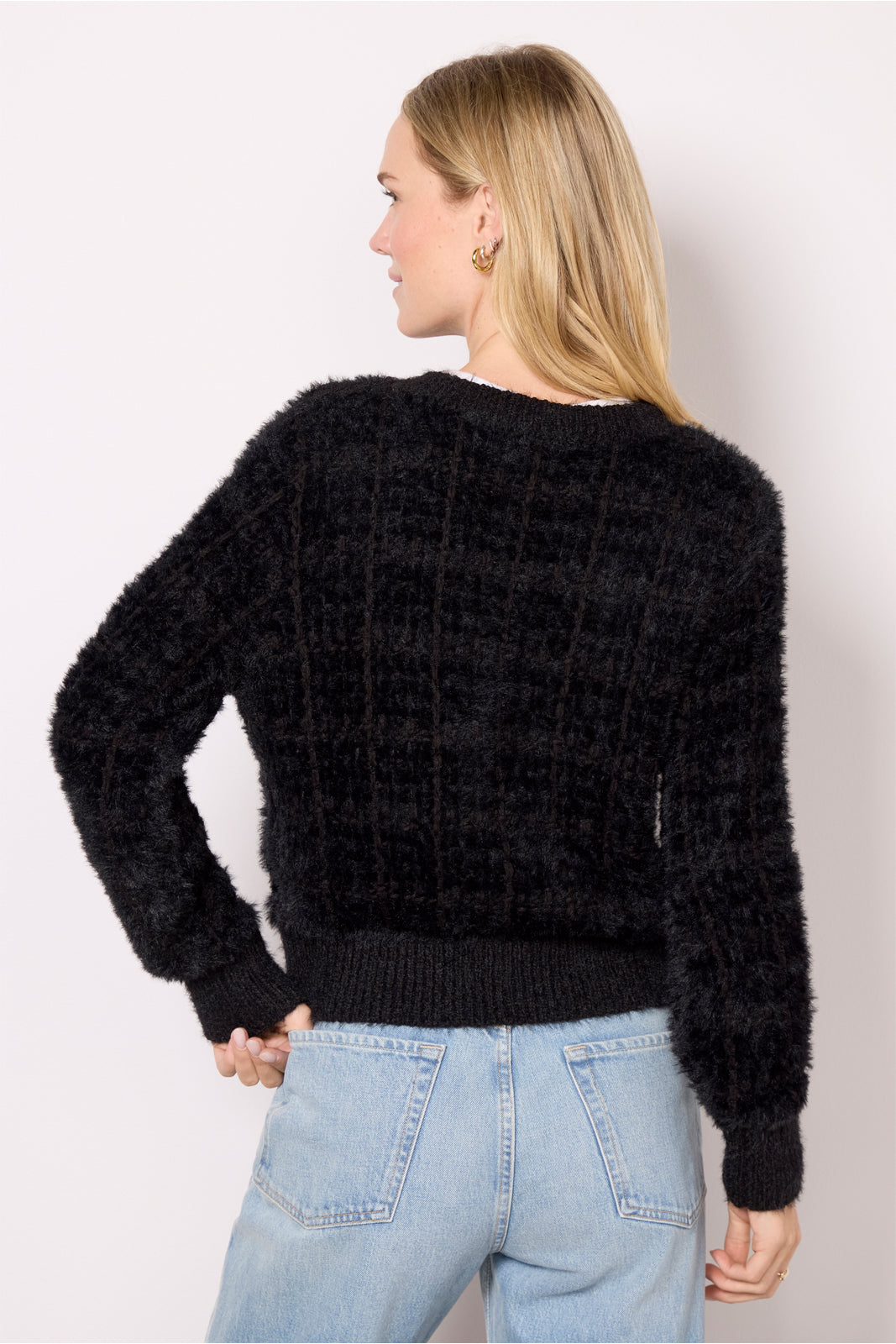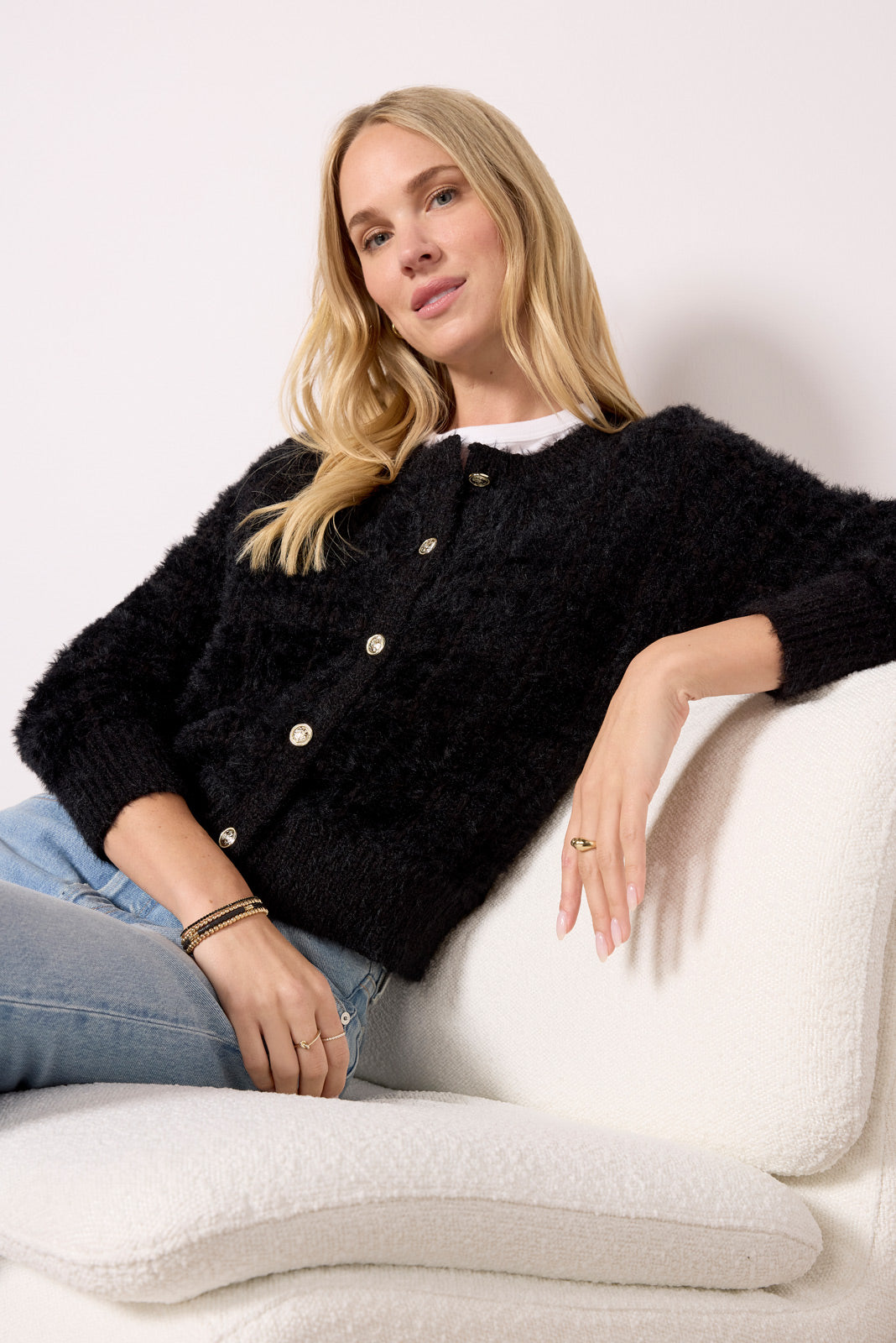 Give your sweater collection a feminine flair with the Janna Ladylike cardigan by EVEREVE.?Crafted in a cozy eyelash knit. this chic sweater?features a button-front silhouette with gold buttons. dropped shoulders. and ribbed trim.