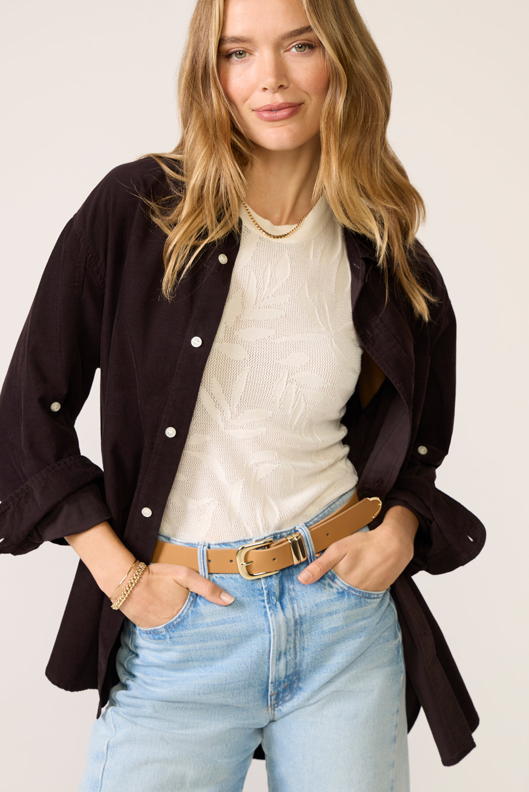 Alone or layered. this corduroy shirt by Citizens of Humanity isĀ an instant fall favorite. The Kayla button-down is finished in lightweight baby corduroy and features a drapey. relaxed silhouette that’s perfect for work-to-weekend wear.