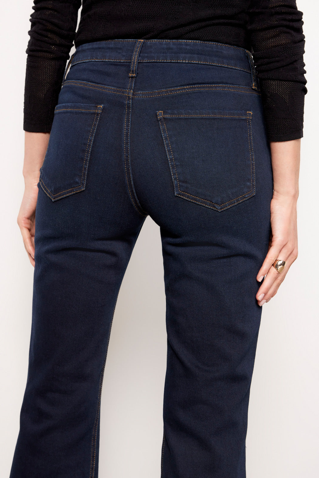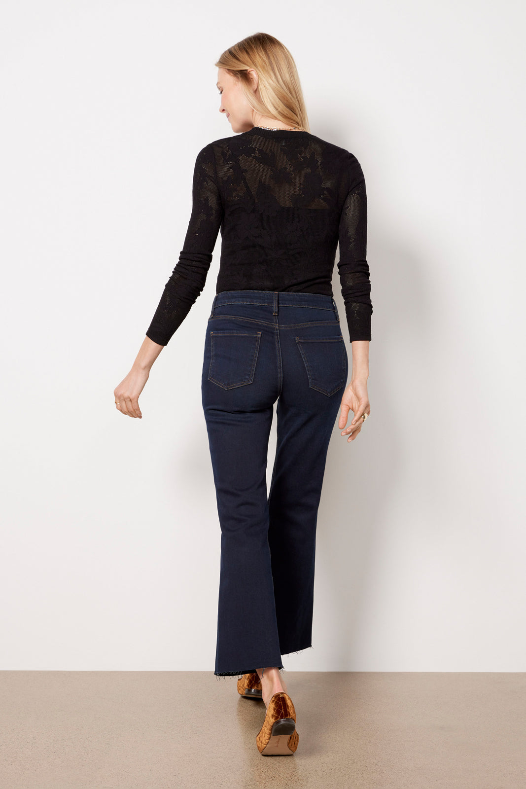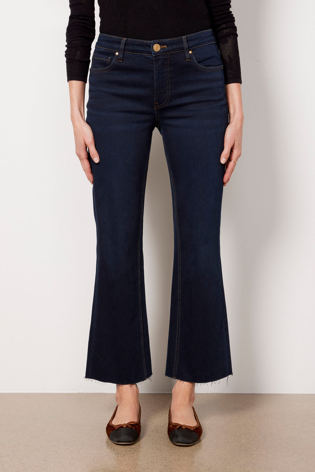 A flattering bootcut leg creates the easy-to-love silhouette of these Kut From The Kloth jeans. Crafted in stretch cotton denim. this jean features a mid-rise waist. clean dark blue wash. and raw ankle-length hems.