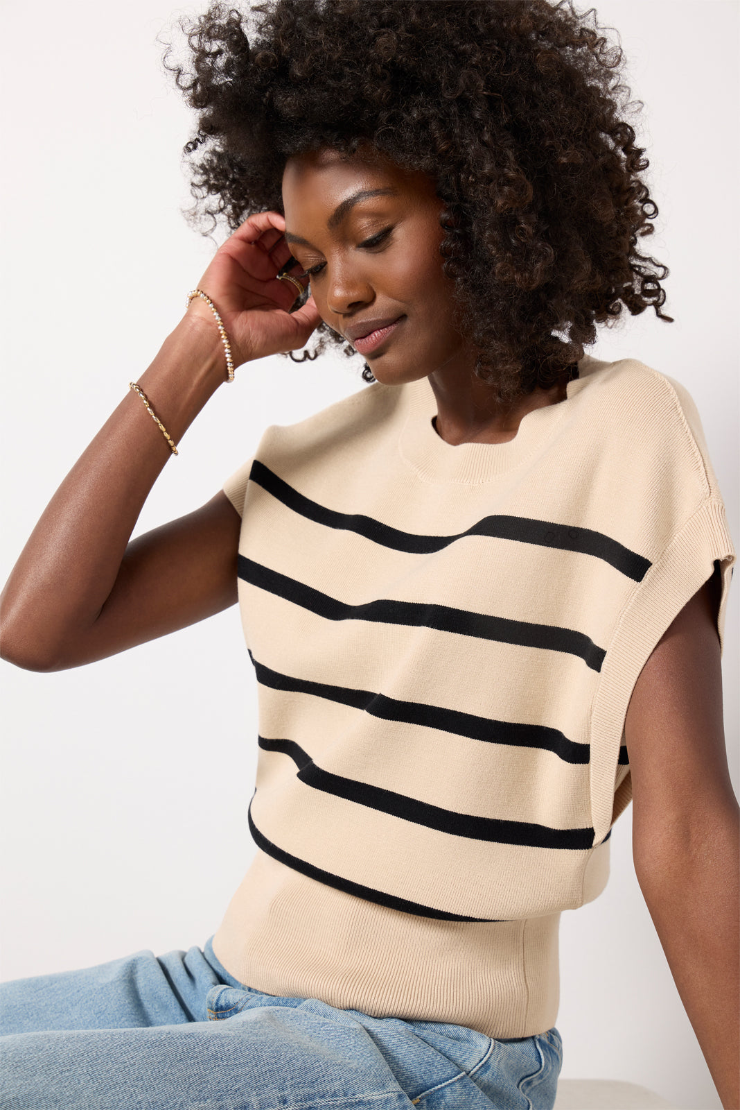 Step into spring in the Korey Pullover by EVEREVE. featuring a crew neckline. a flattering banded bottom. and bra-friendly gussets at the armhole.?