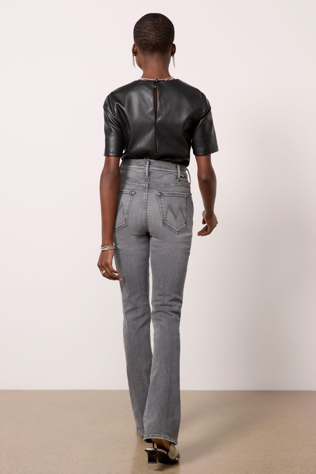The Lil’ Hustler Heel by MOTHER is a petite straight jean. featuring a subtle bootcut shape. full-length clean hems. and a faded grey wash. Designed to complement petite body types. these jeans feature a higher knee placement. shorter inseam. and shorter rise for a perfect. always-flattering fit.