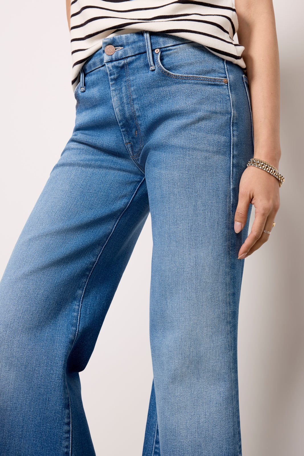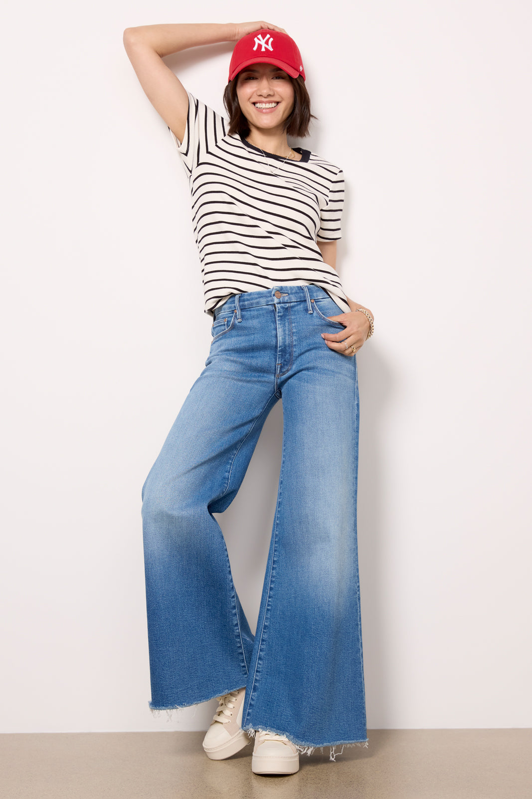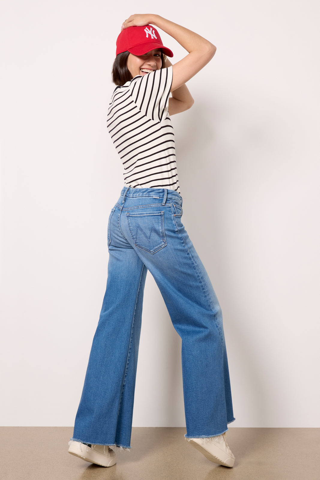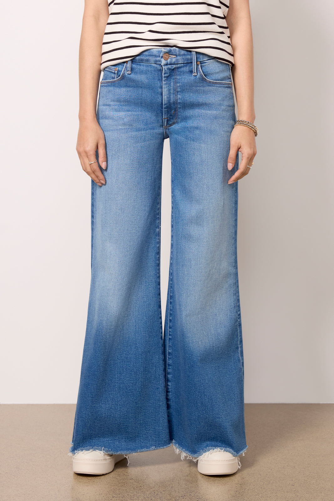 The Lil Roller Fray jean by MOTHER is a petite wide leg silhouette. crafted in soft stretch denim with a full-length leg and raw hems.?Designed to complement petite body types. these jeans feature a higher knee placement. shorter inseam. and shorter rise for a perfect. always-flattering fit.