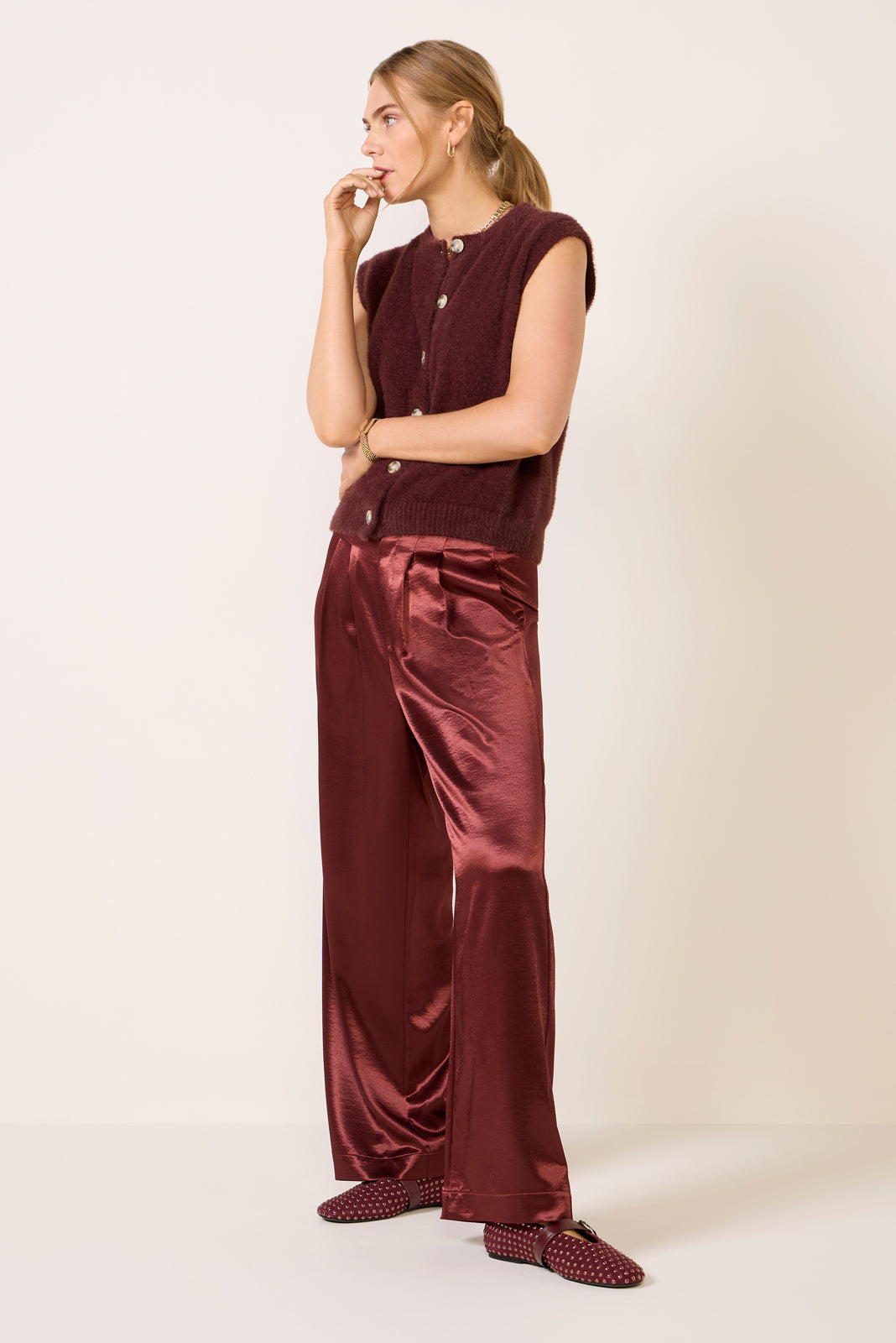 A luxurious soft texture adds the perfect finish to the Lyon Vest by Melissa Nepton. featuring a crew neckline. front button closures. and a relaxed fit.