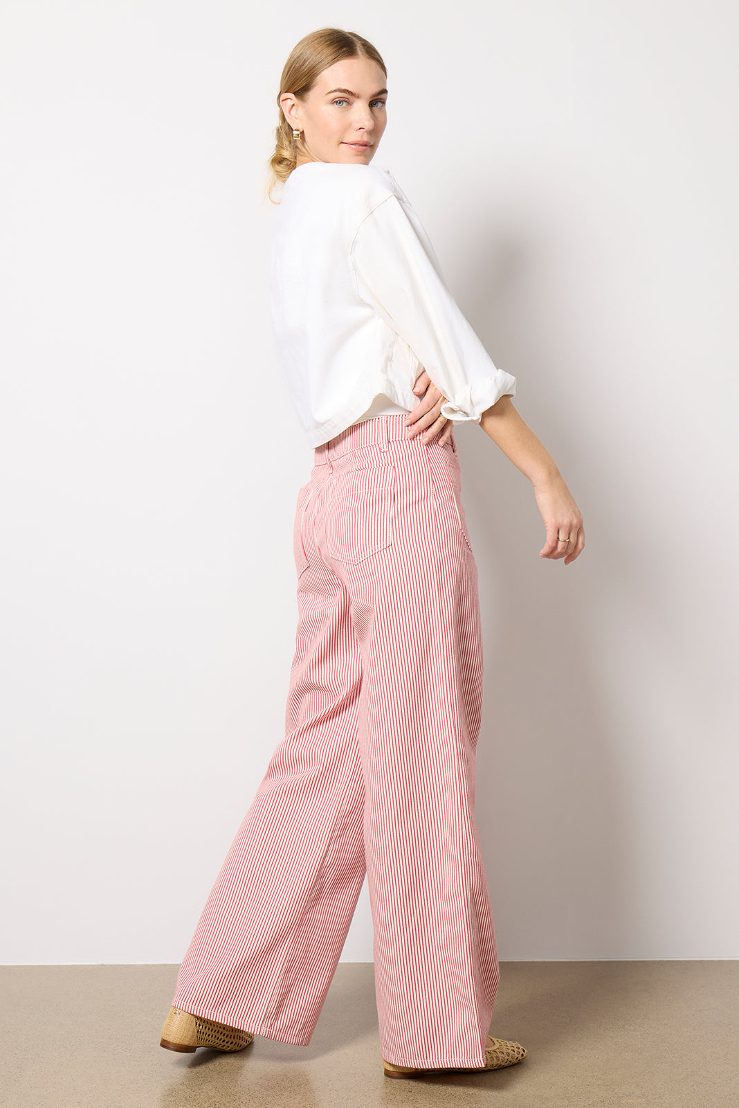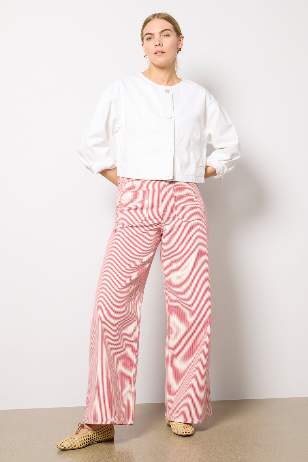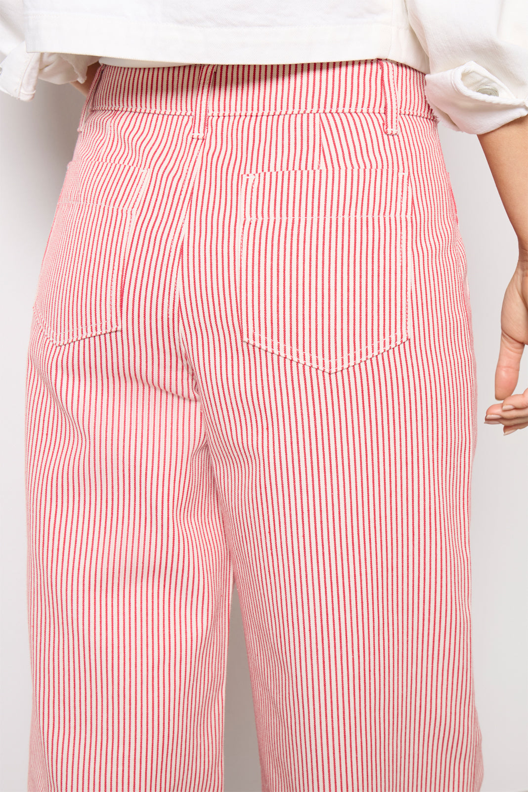 Perfect for work or play. these striped wide leg pants by Sanctuary are crafted in non-stretch cotton fabric and feature a high-rise silhouette with patch pockets at the front and back.
