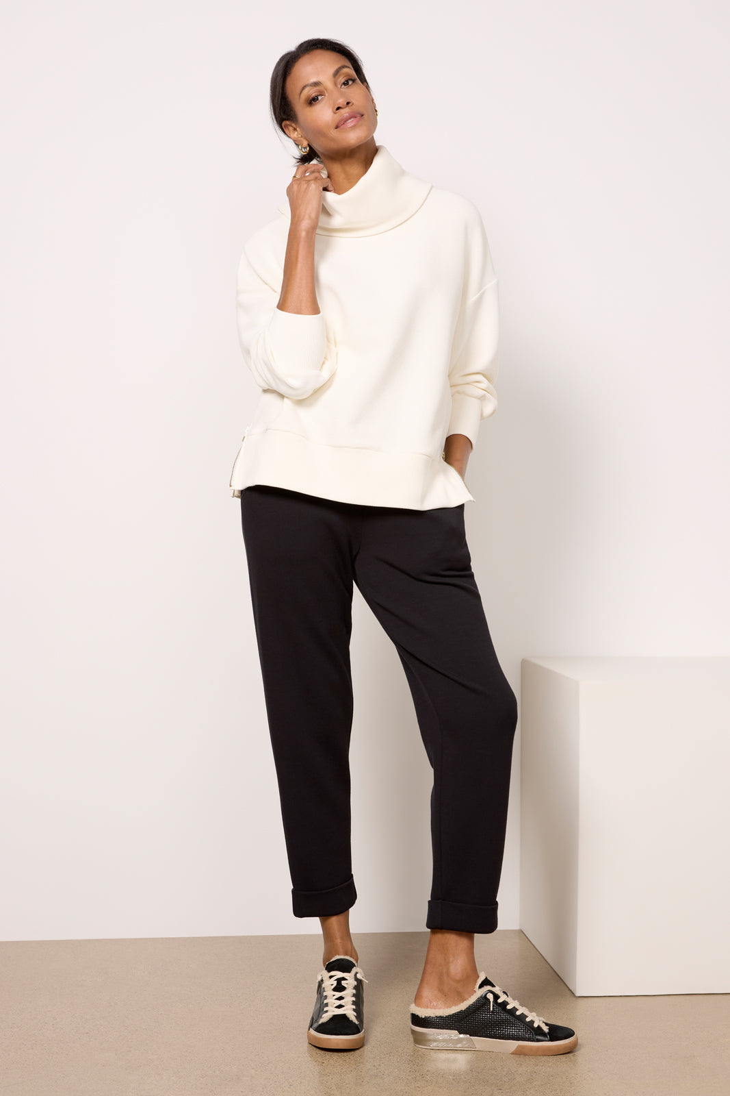 Crafted in soft rib knit fabric. this Varley sweatshirt is an easy. elevated staple. This weekend-ready pullover features a relaxed fit. cowl neckline. and zipper details at the sides.