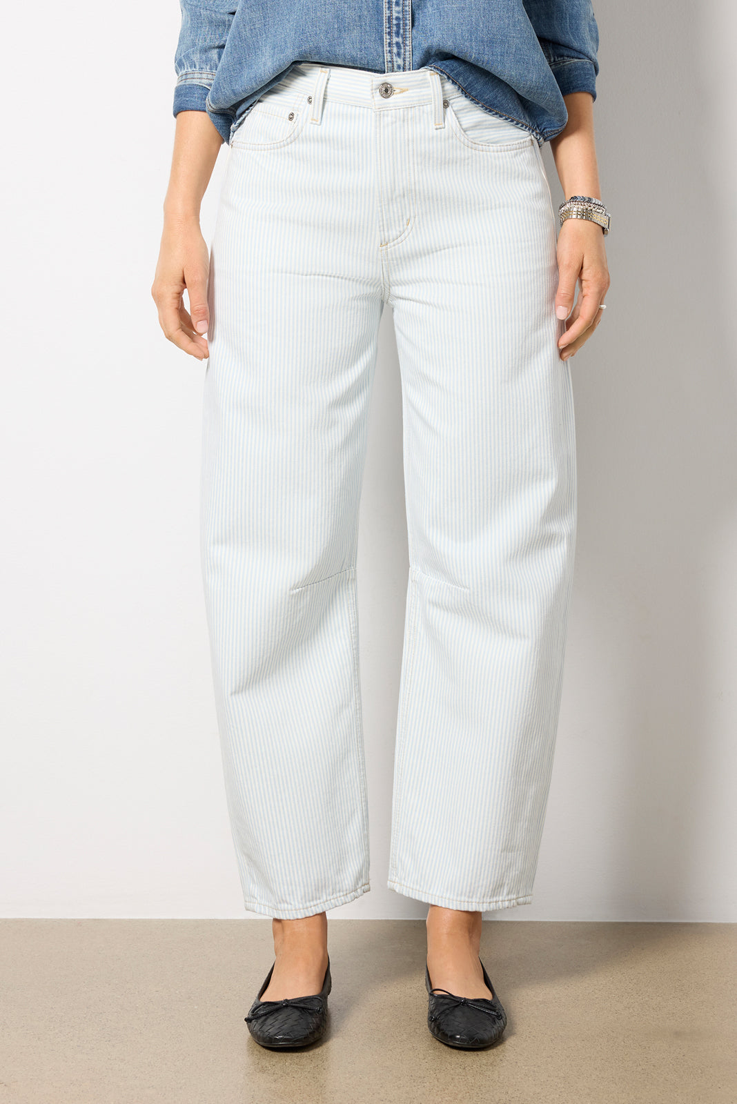 Refresh your denim collection with these subtly striped barrel jeans by Citizens of Humanity.?Finished in rigid cotton denim. the Miro features a relaxed silhouette with a tapered. bowed leg. high-rise waist. and ankle-length hems.