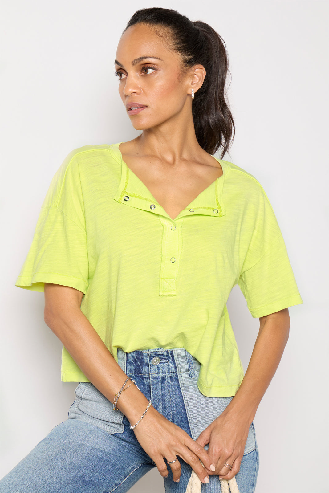 Update your everyday tee collection with the Oaklynn Washed Henley by EVEREVE. Finished in cotton slub fabric. this versatile short sleeve shirt features a snap-front neckline and a relaxed. slightly cropped fit—perfect for wearing alone or under your favorite layer.