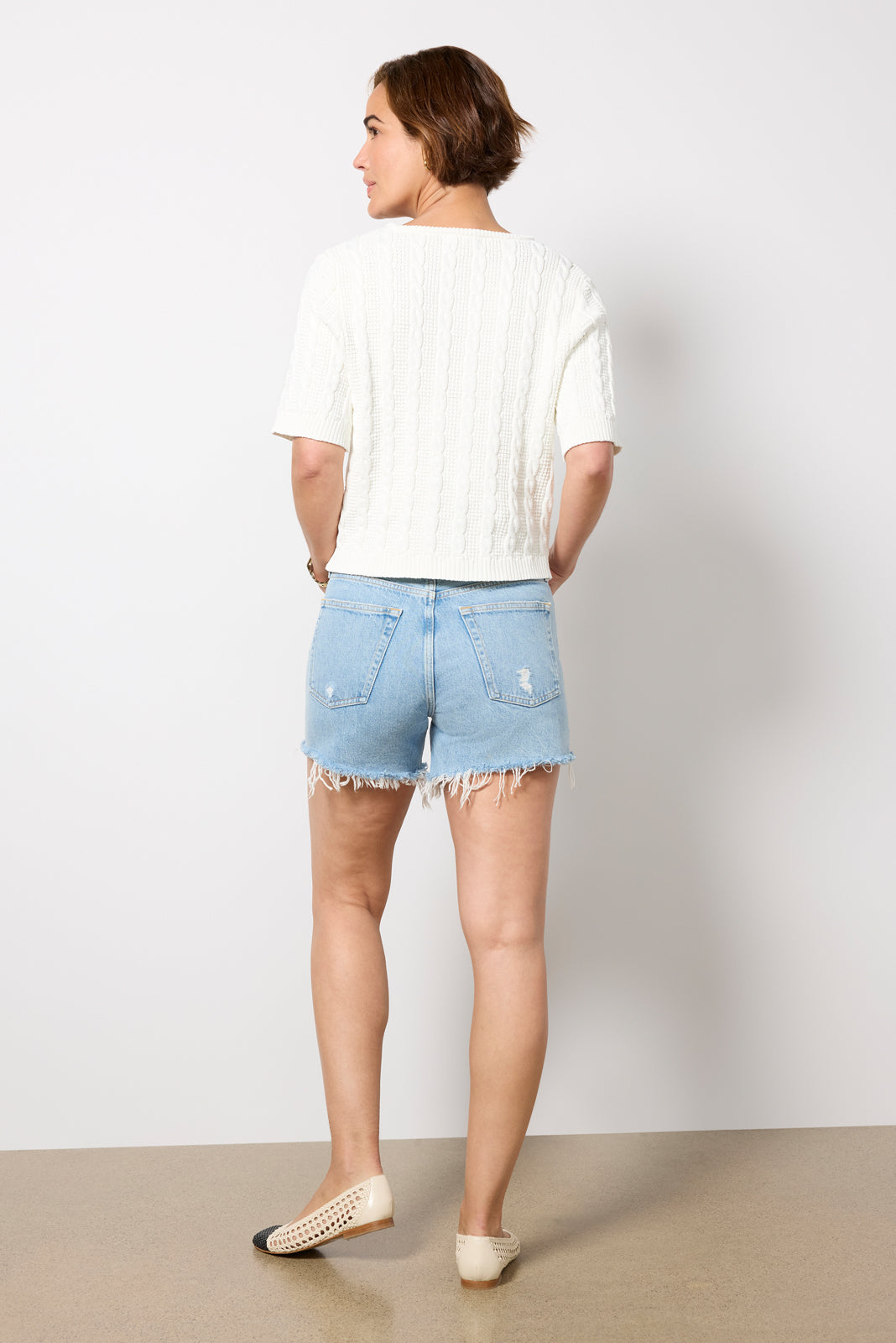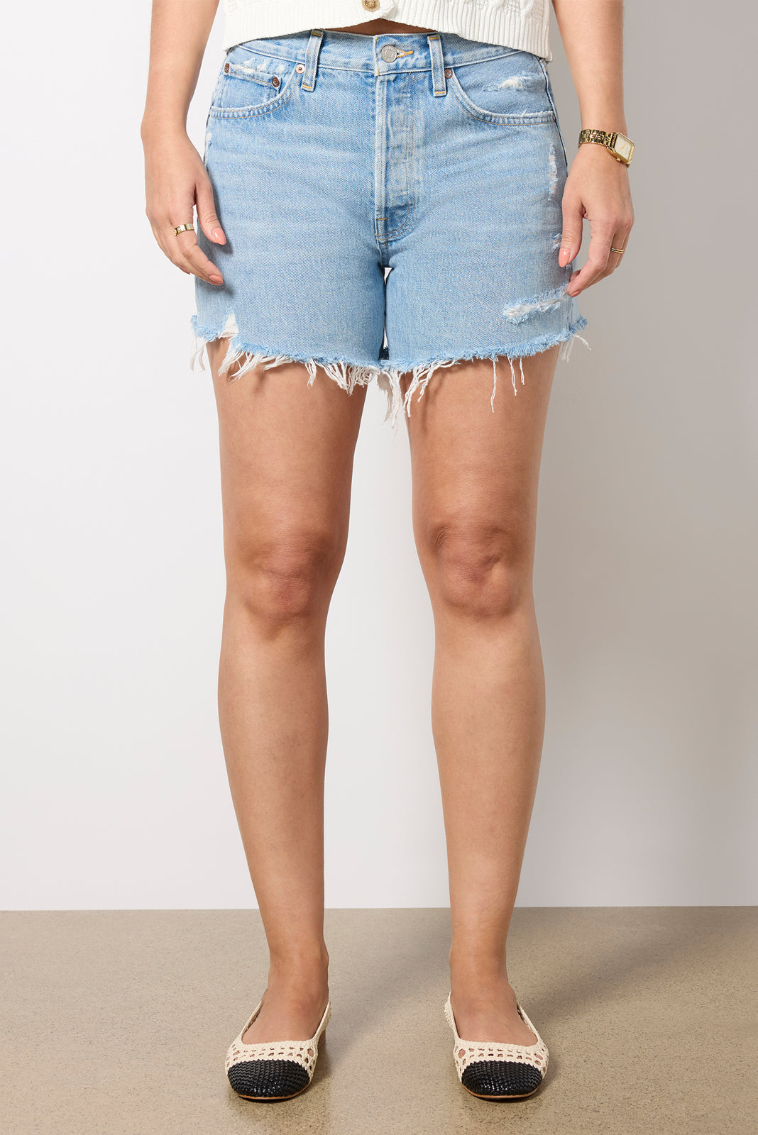 With a worn-in vintage feel. these AGOLDE high-rise cutoffs are easy to pair with everything from graphic tees to a lightweight sweater. With a super flattering fit and new longer length. these are guaranteed to become your new warm weather staple.