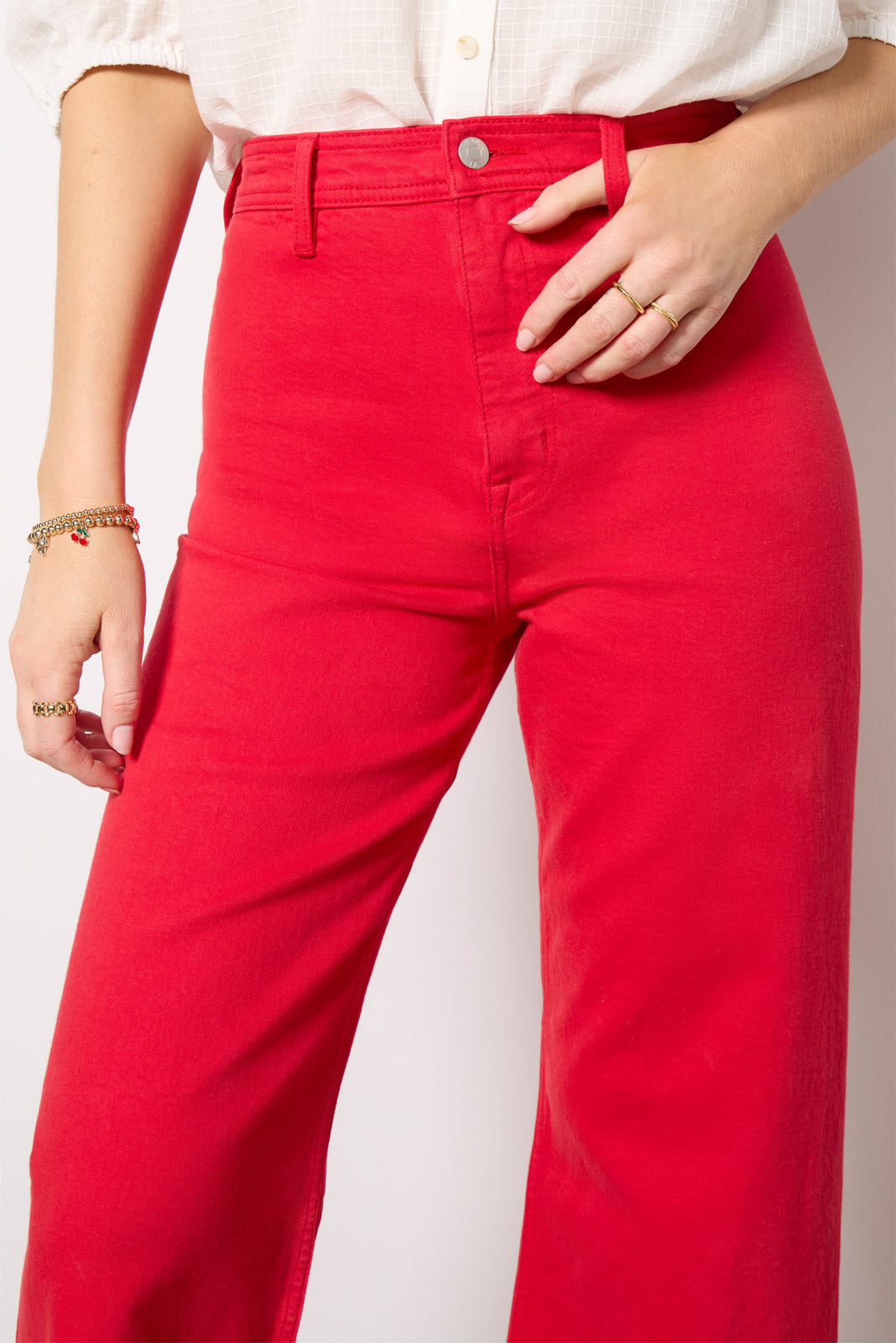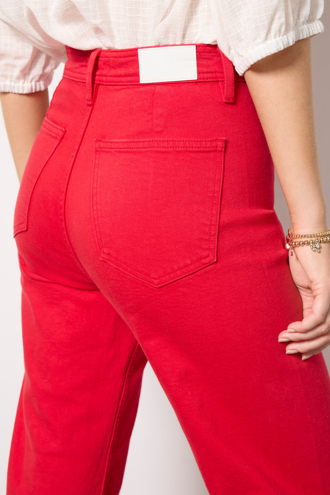 Finished in a vibrant ruby red wash. the Penny wide leg jean by Pistola features a flattering high-rise silhouette. comfortable stretch denim fabric. and raw hems cropped at the ankle.
