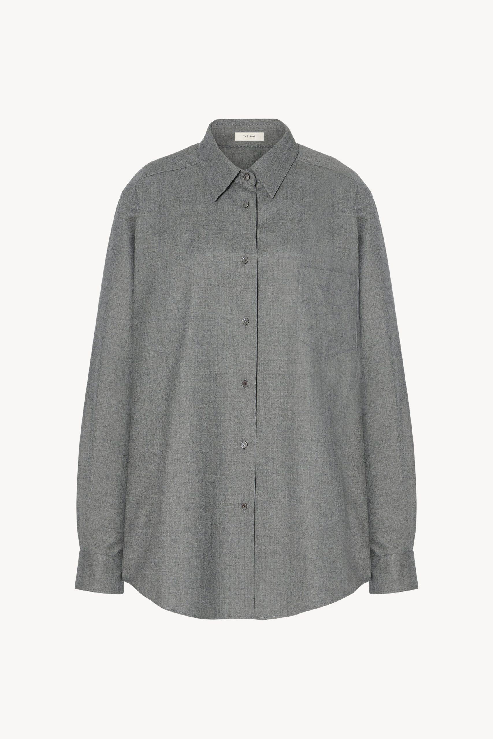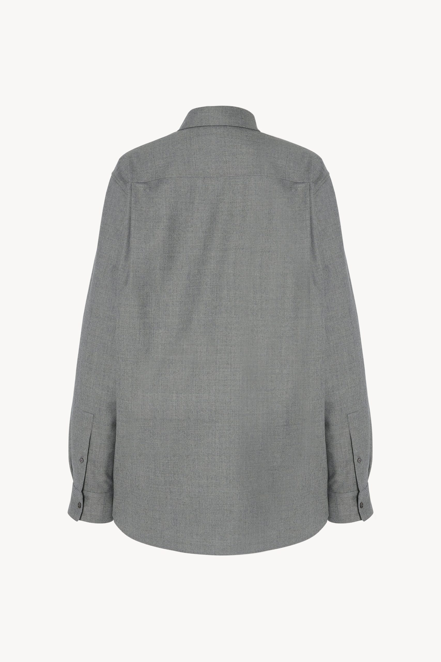 Oversized button-up shirt in virgin wool flannel with front patch pocket and exposed front placket with mother-of-pearl buttons.