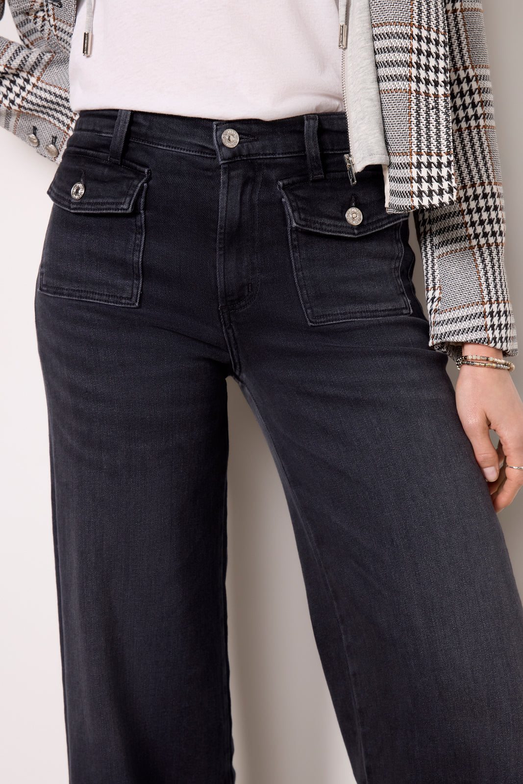 Finished with front patch pockets and a faded black wash. the Raven wide leg jean by Citizens of Humanity features a full-length inseam. relaxed fit. and soft stretch denim that’s perfect for day-to-night wear.