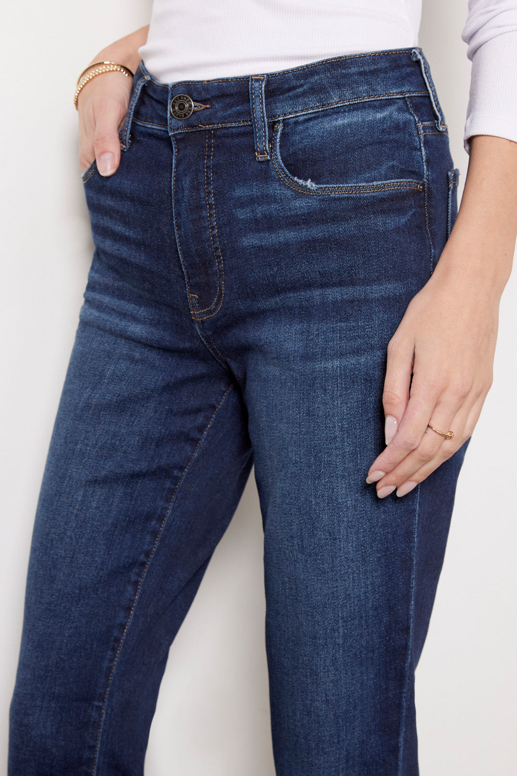A versatile wardrobe staple. these straight leg jeans by Kut From The Kloth feature a flattering high-rise fit. ankle-length hems. and a hint of distressing at the pockets. You’ll be wearing them day to night thanks to the soft stretch denim fabric.