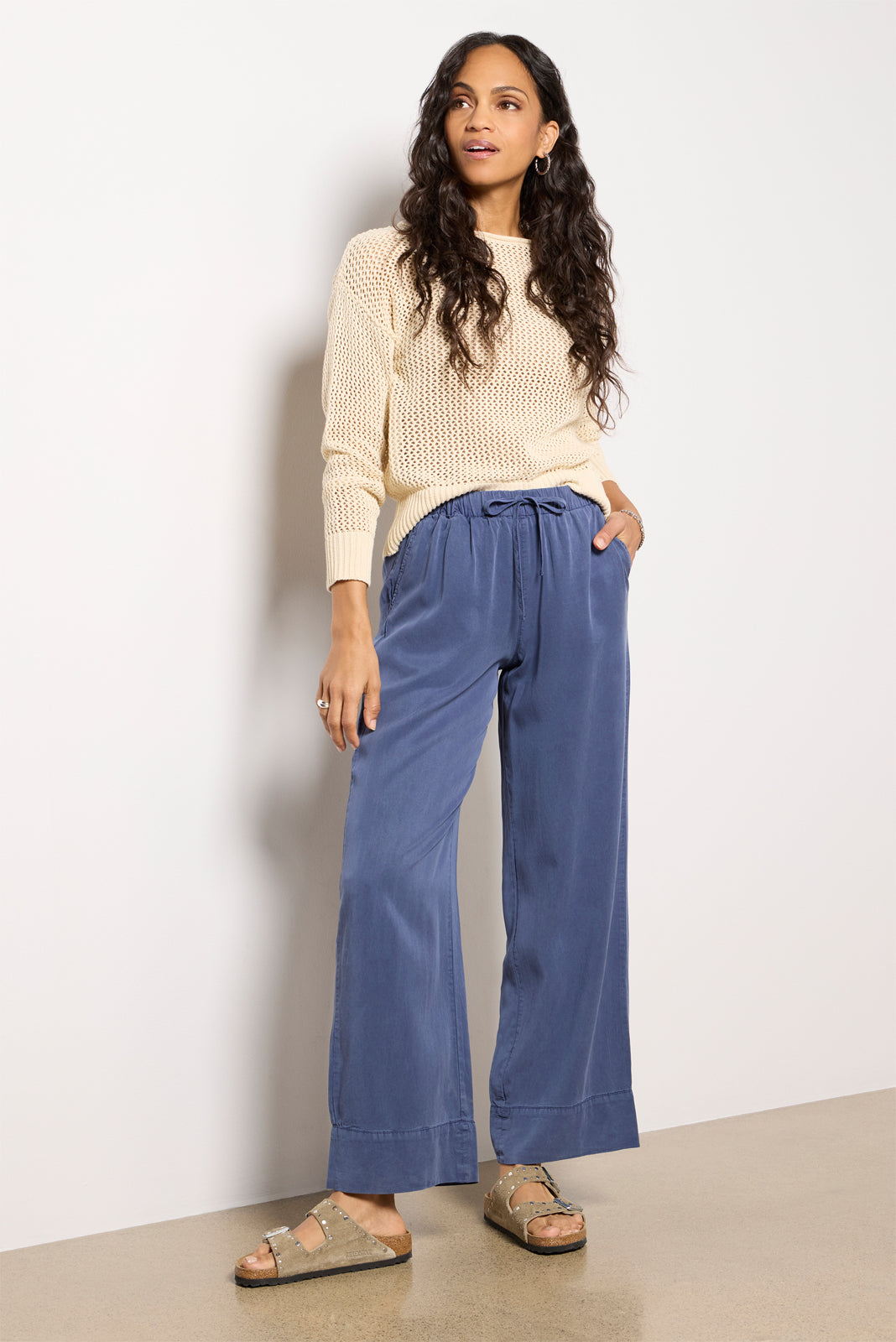 Crafted in a soft twill fabric. the Riley Pant by Alex Mills features an adjustable drawstring waistband. side pockets. a?full-length inseam. and a straight-leg silhouette.?