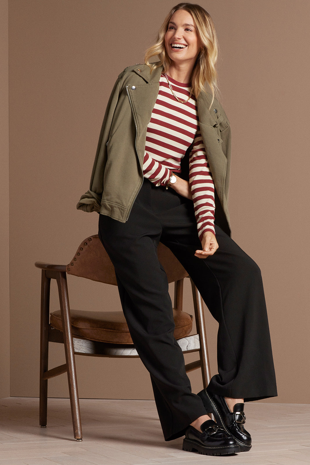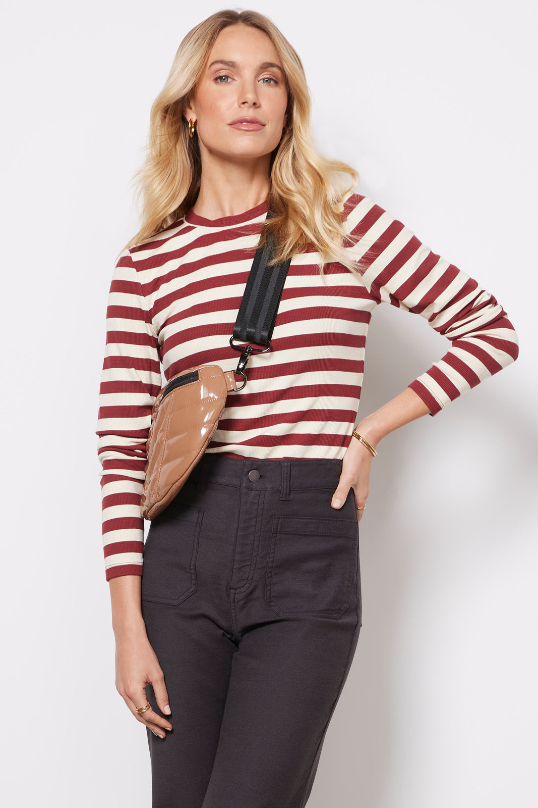 A go-to wardrobe essential. this versatile long sleeve top by LNA features a fitted crewneck silhouette in soft rib knit fabric—perfect for wearing alone or layered.