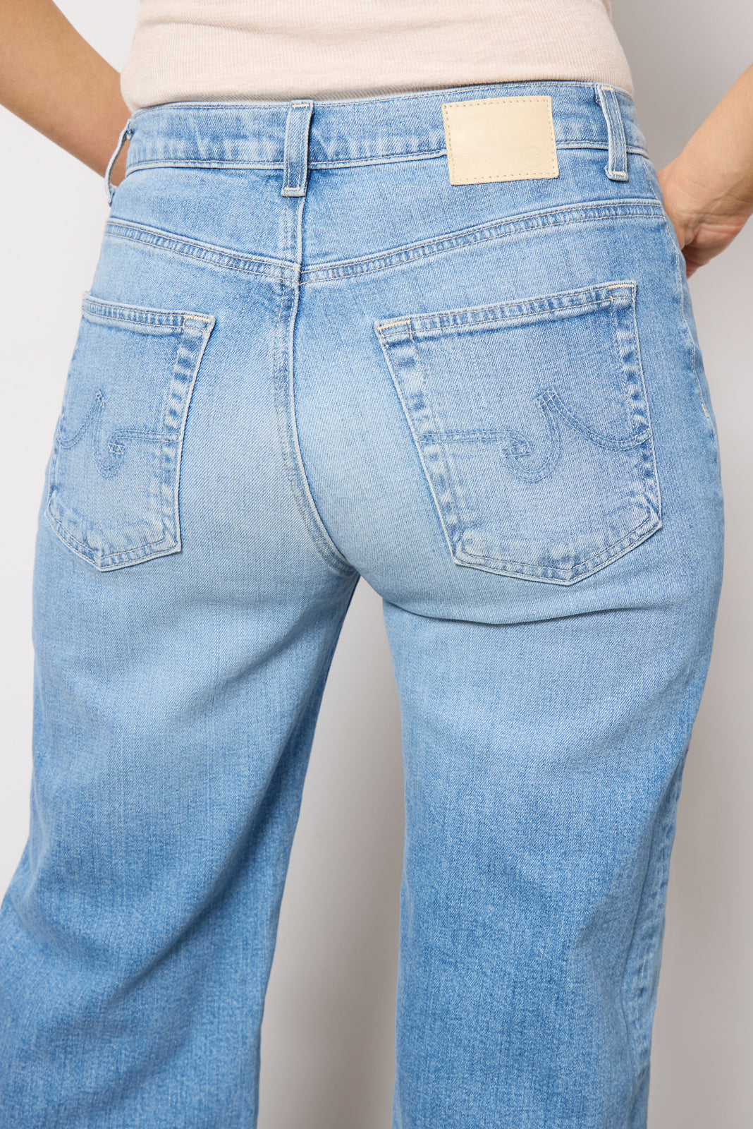 A fun and flattering wide leg silhouette defines these versatile AG jeans. With a mid-rise fit.?light blue wash. and front seam details. these jeans are the perfect addition to your spring rotation.?