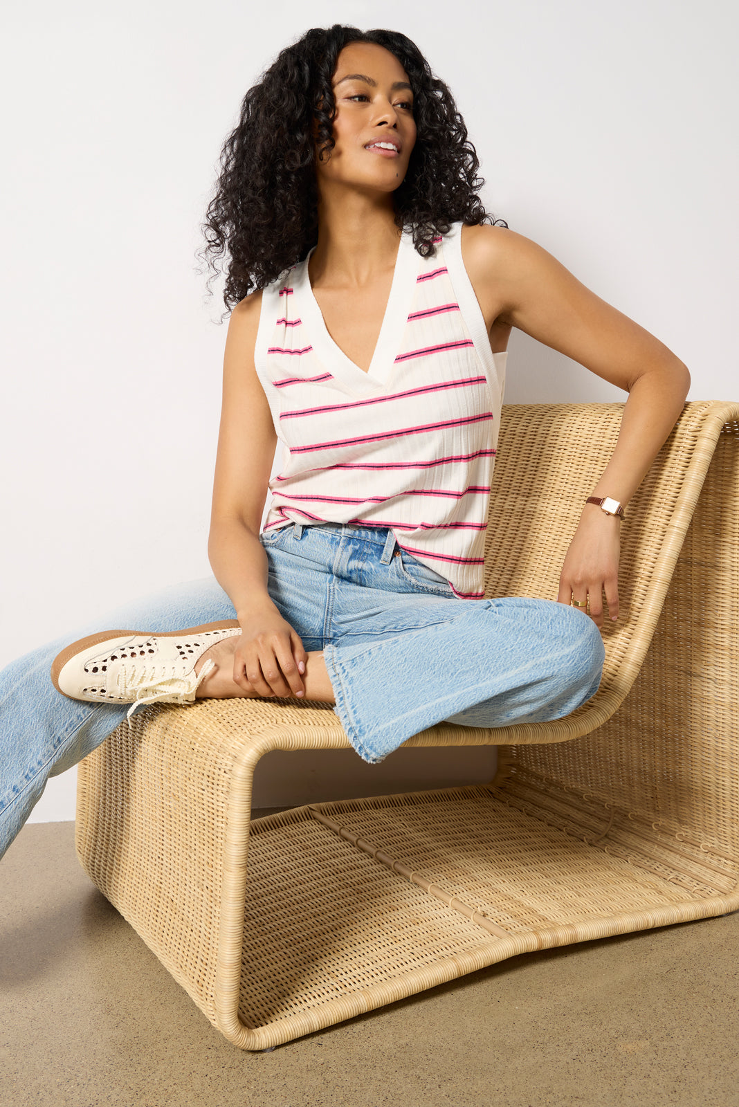 A versatile wardrobe essential. the Sarina tank by EVEREVE is crafted in soft wide ribbed fabric with a v-neckline and bra-friendly gussets at the armholes. Dressed up or down. you’ll be wearing it on repeat.
