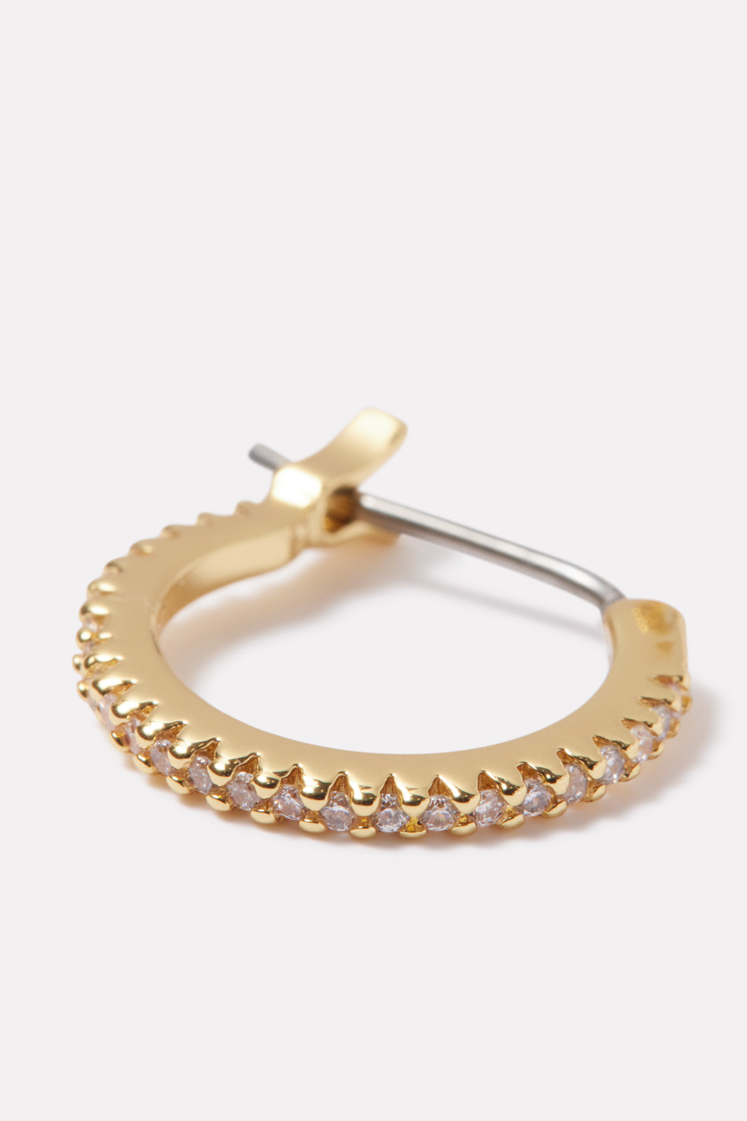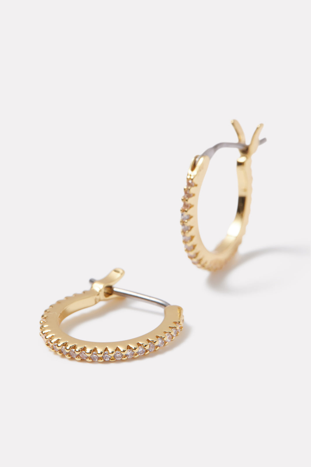 Add a hint of shimmer to your everyday look with these huggie earrings by Gorjana featuring a hinge closure. 18k gold plated finish. and cubic zirconia stones.