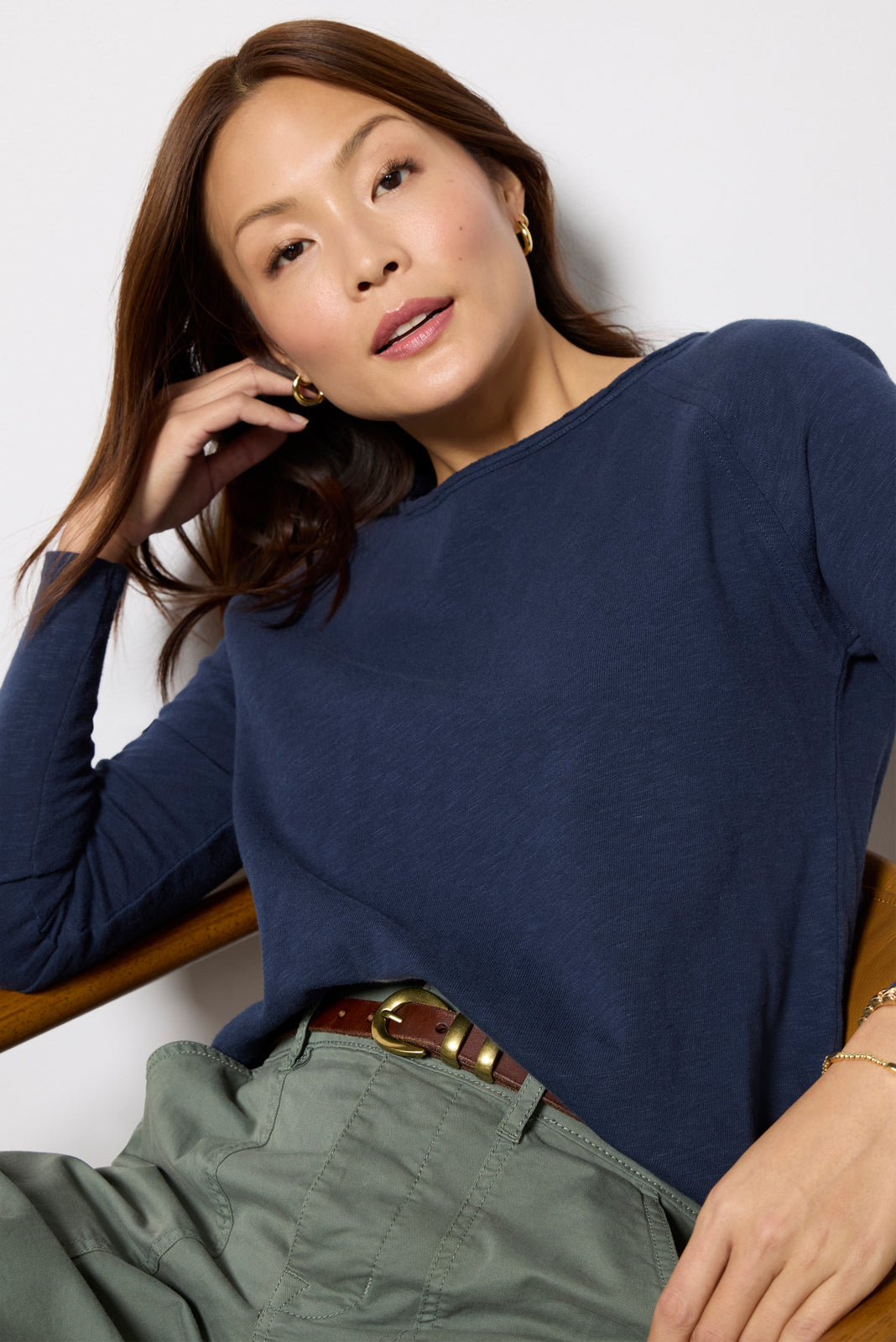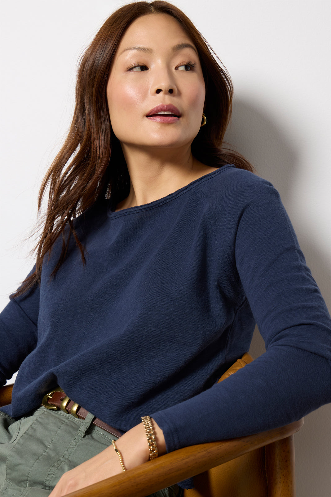 Perfect for everyday wear. the Sonoma Crew?tee by American Vintage is crafted in comfortable cotton slub fabric and features a relaxed silhouette. long raglan sleeves. and raw edge detailing at the collar and hem.