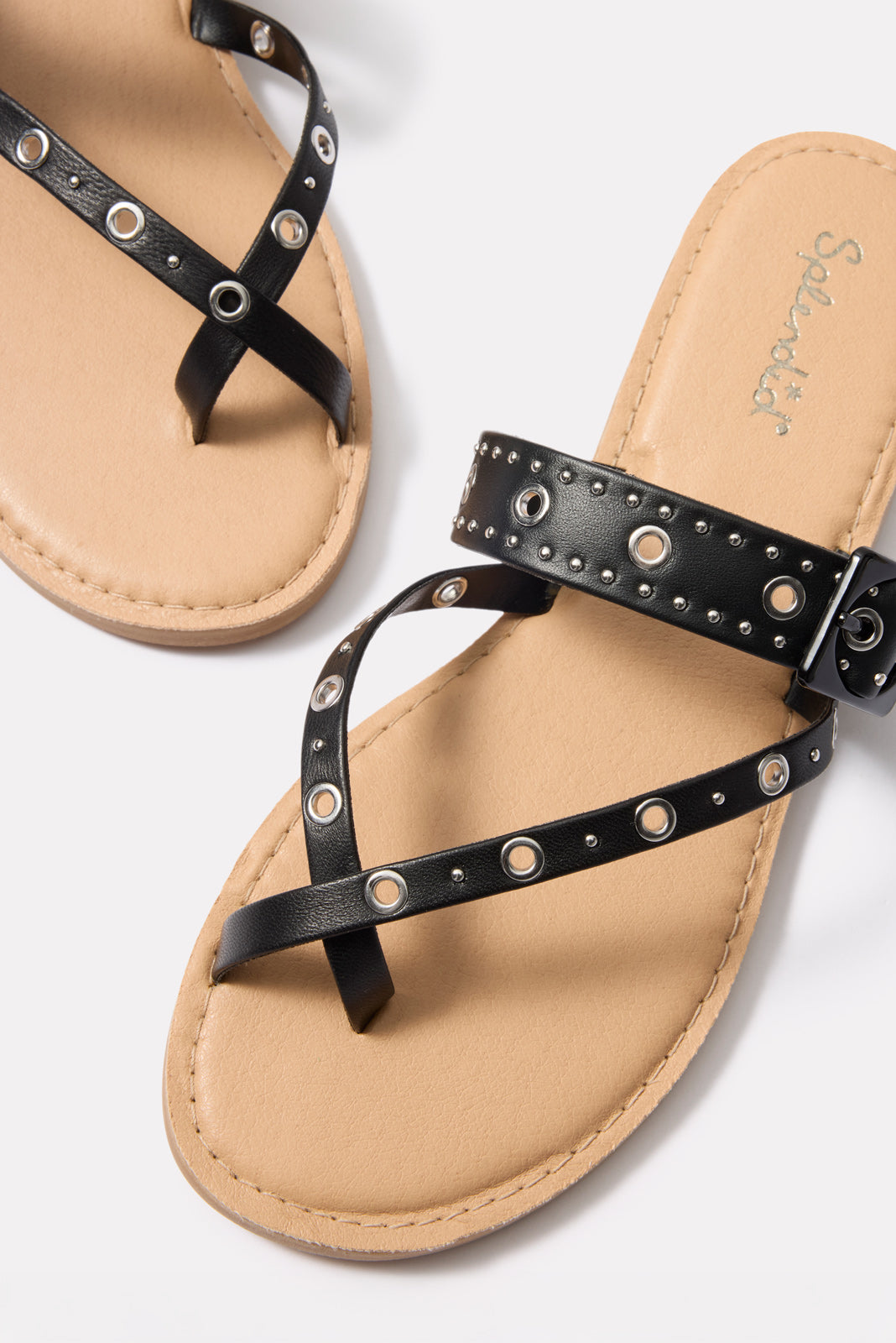 Take any warm-weather look from day to night with the Sutton sandal by Splendid Footwear. These stylish slides feature crossover?leather straps with an adjustable buckle and silver stud details.