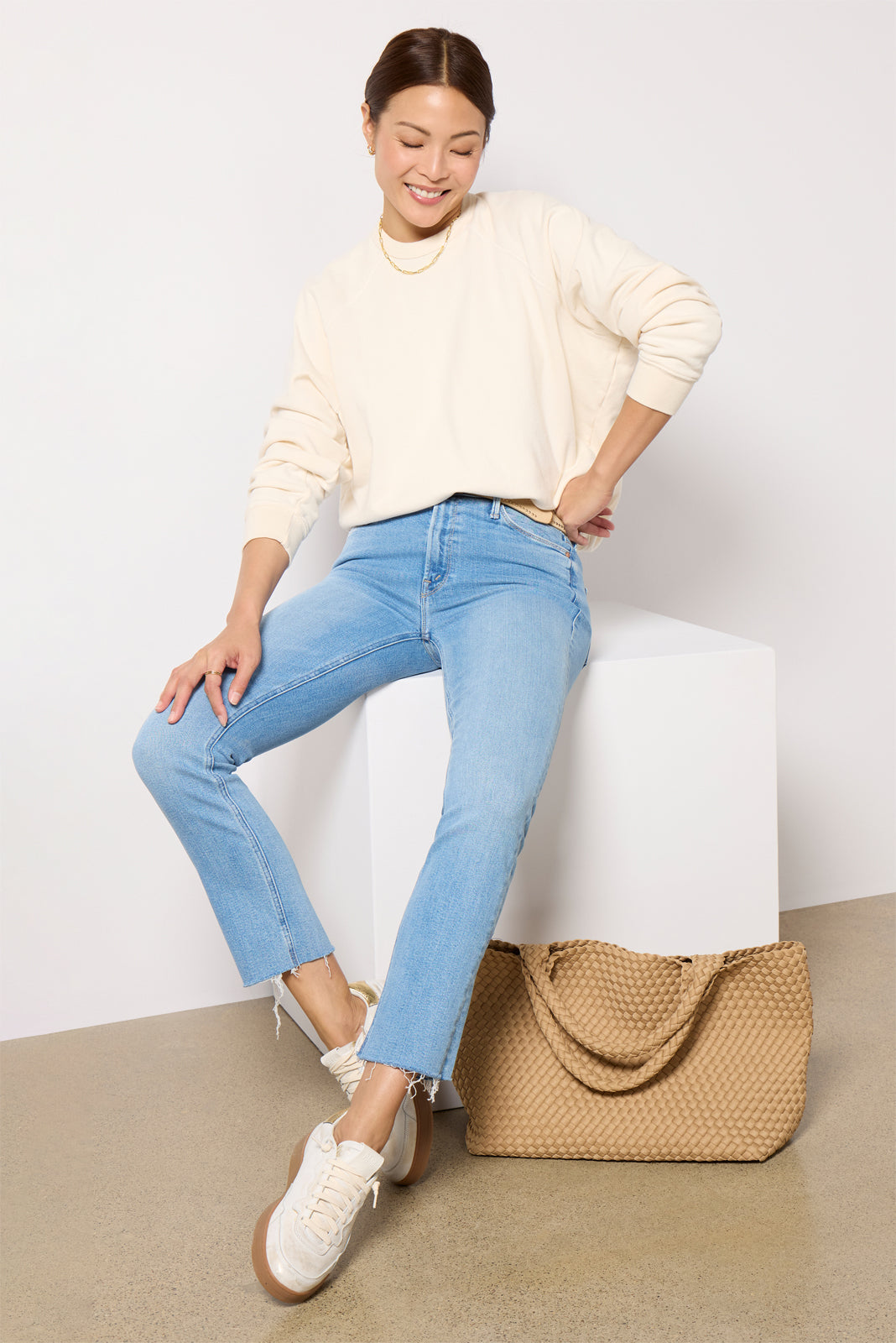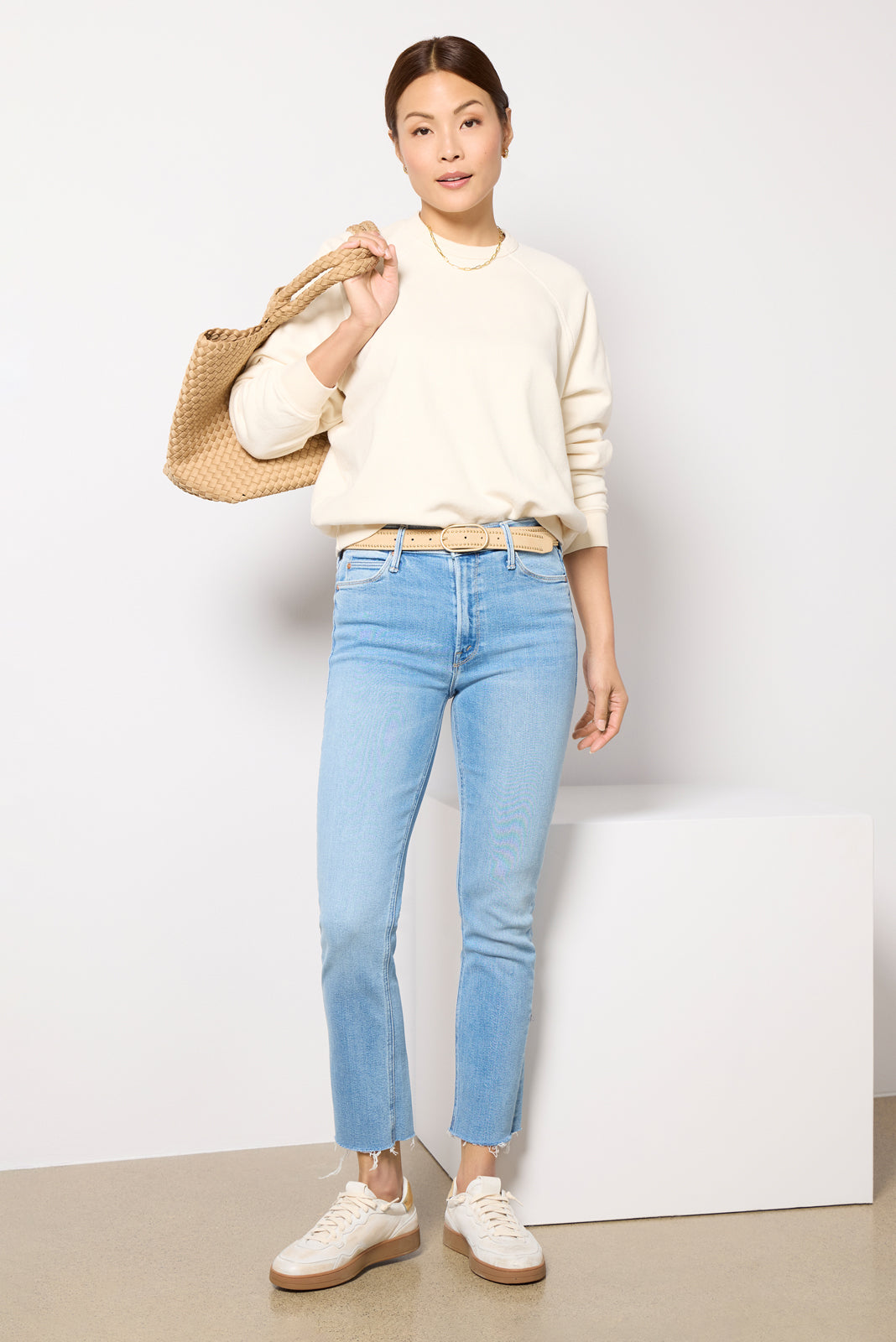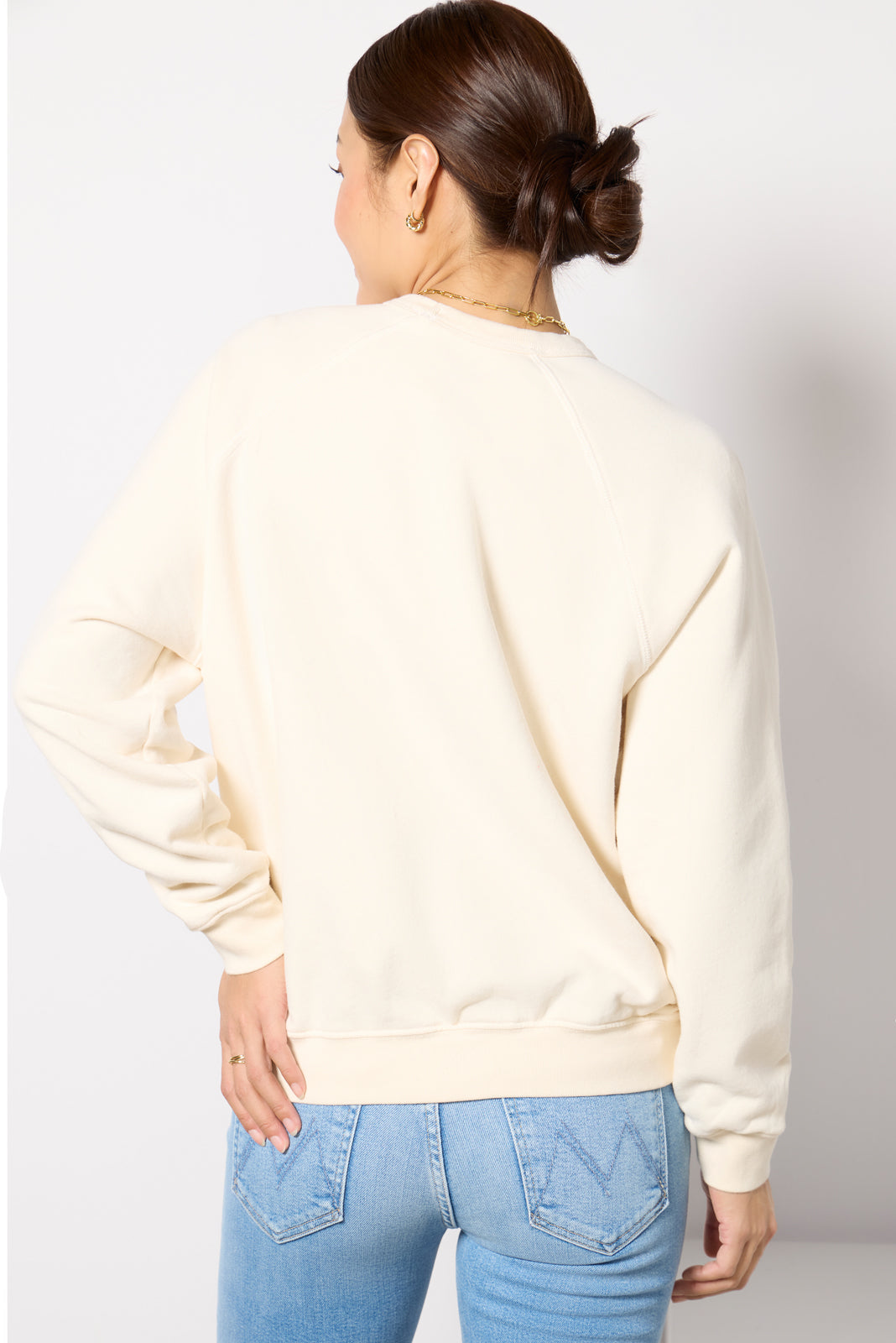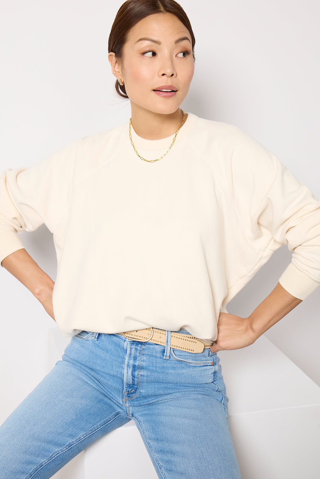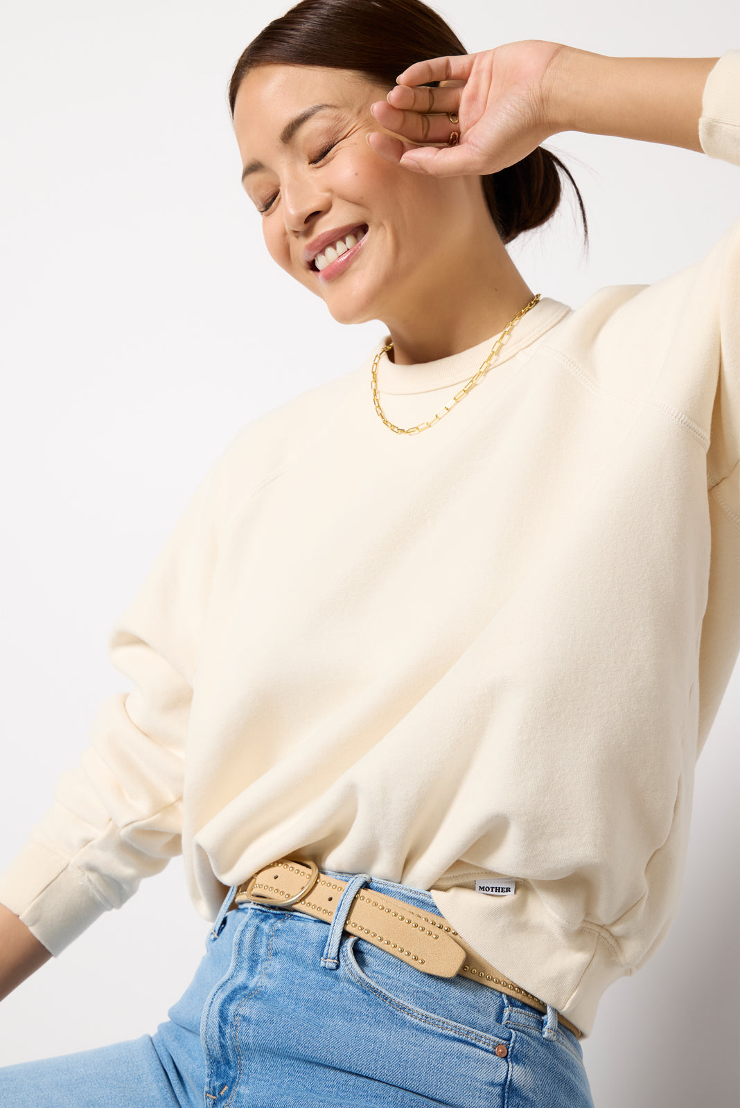 Stay comfy-chic in the Biggie Concert sweatshirt by MOTHER. Crafted in soft. comfortable cotton. this raglan pullover features a crew neckline. ribbed trim. and an easy. relaxed fit.