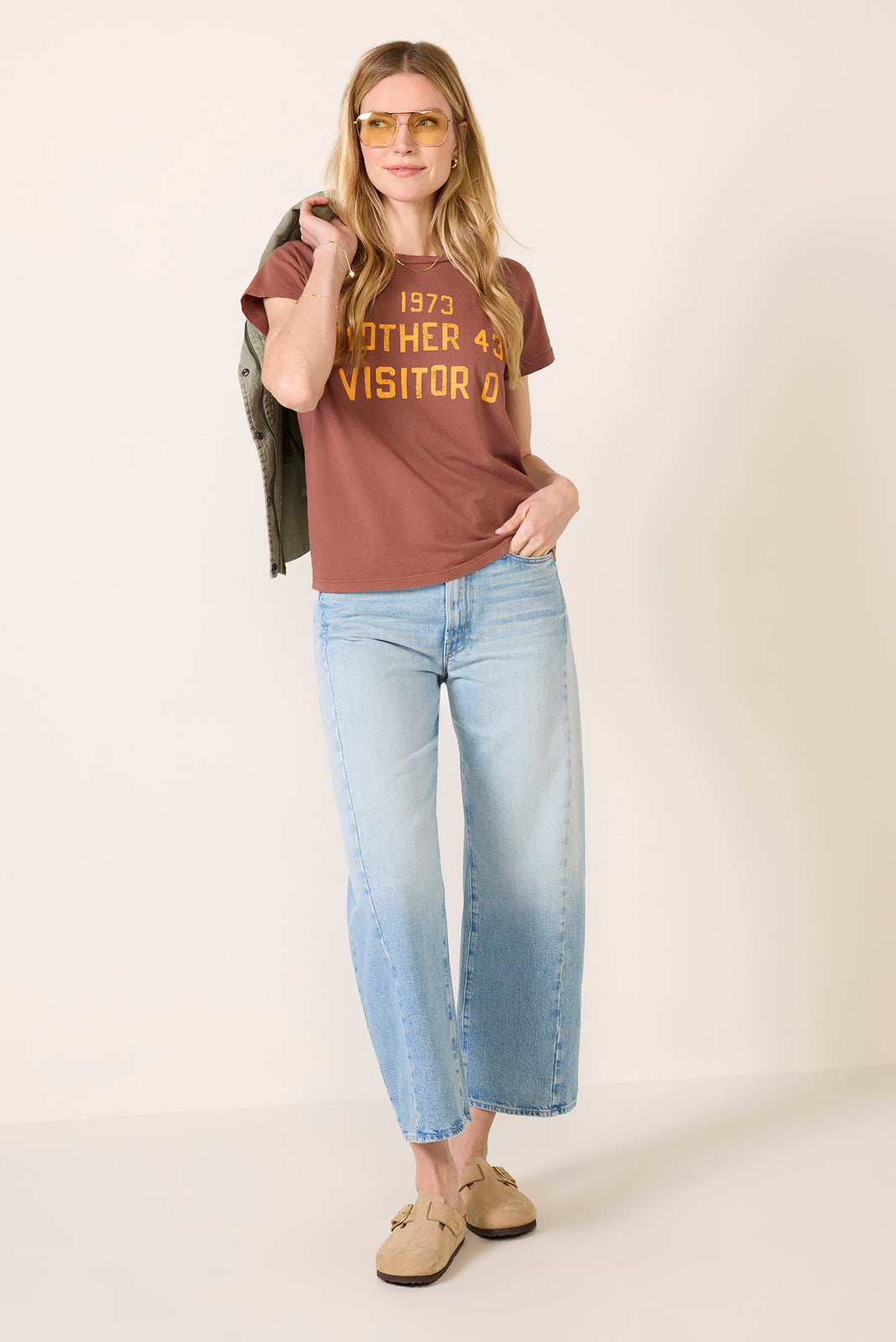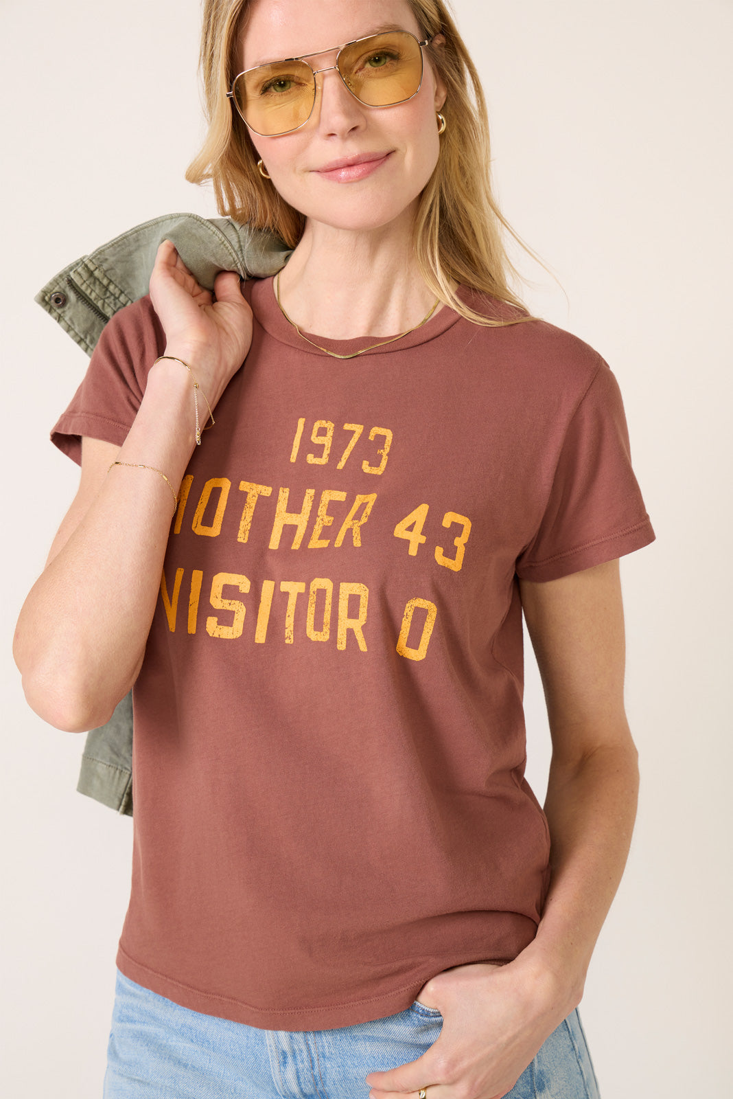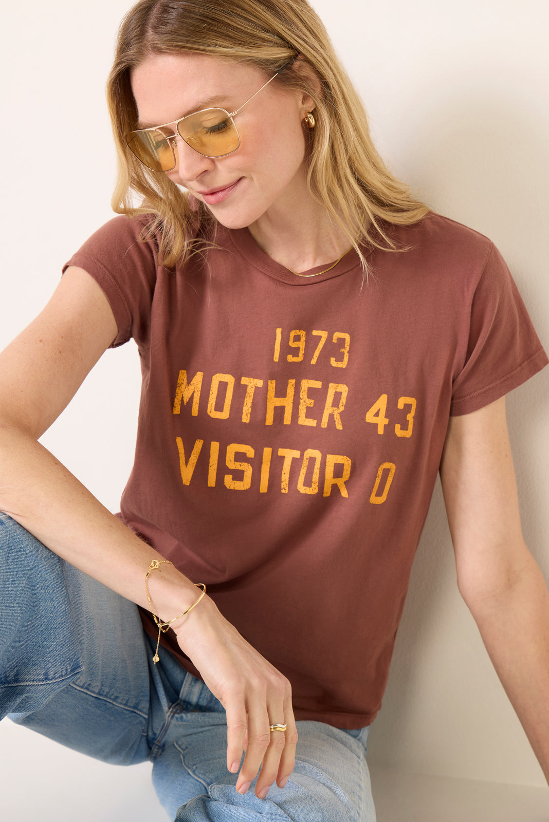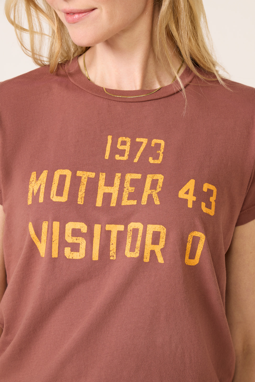 Top off your tee collection with The Boxy Goodie Goodie graphic t-shirt by MOTHER. crafted in soft cotton fabric with a crew neckline. short sleeves. and a slim fit for a vintage-inspired feel.