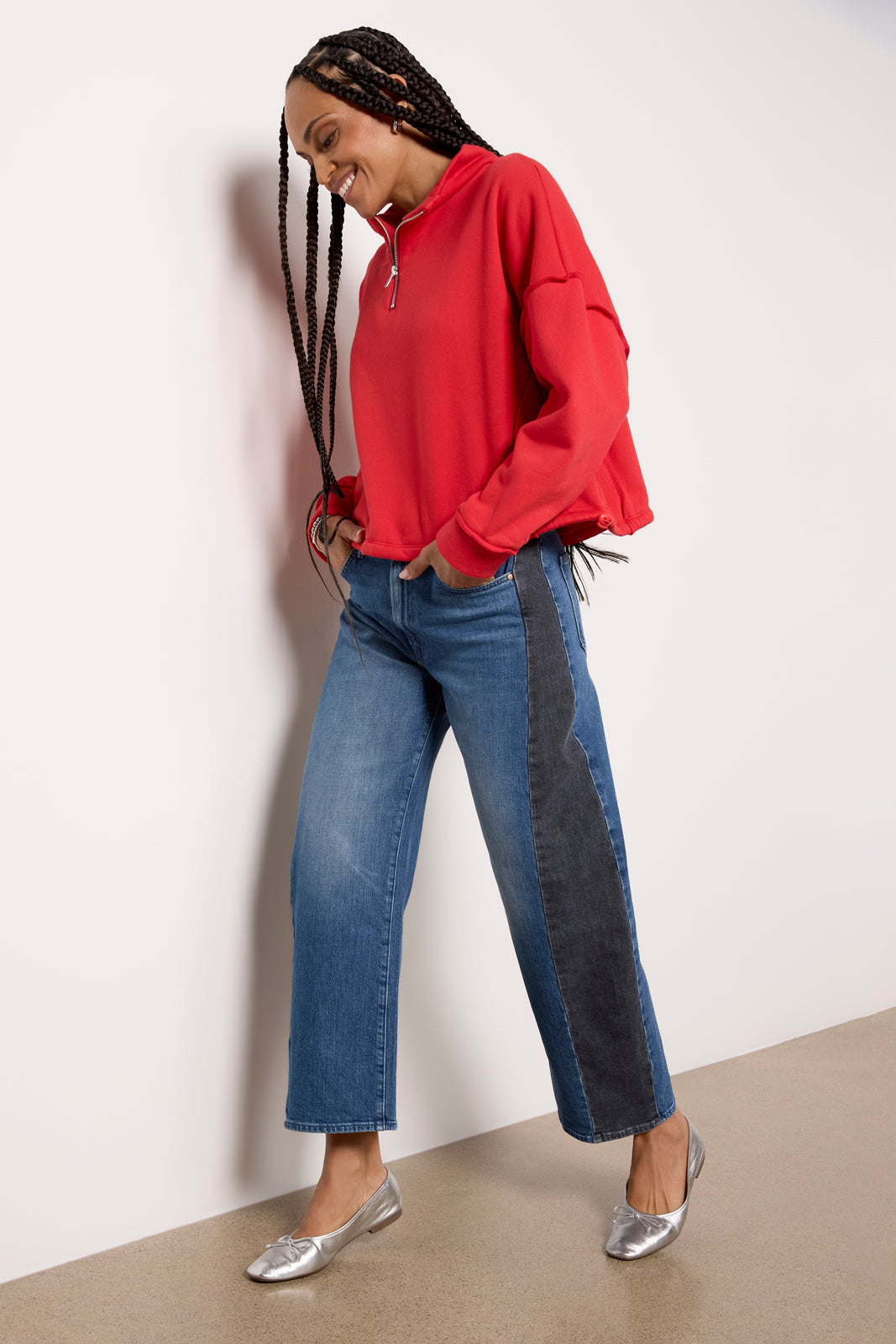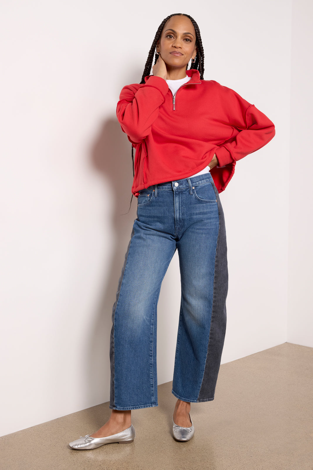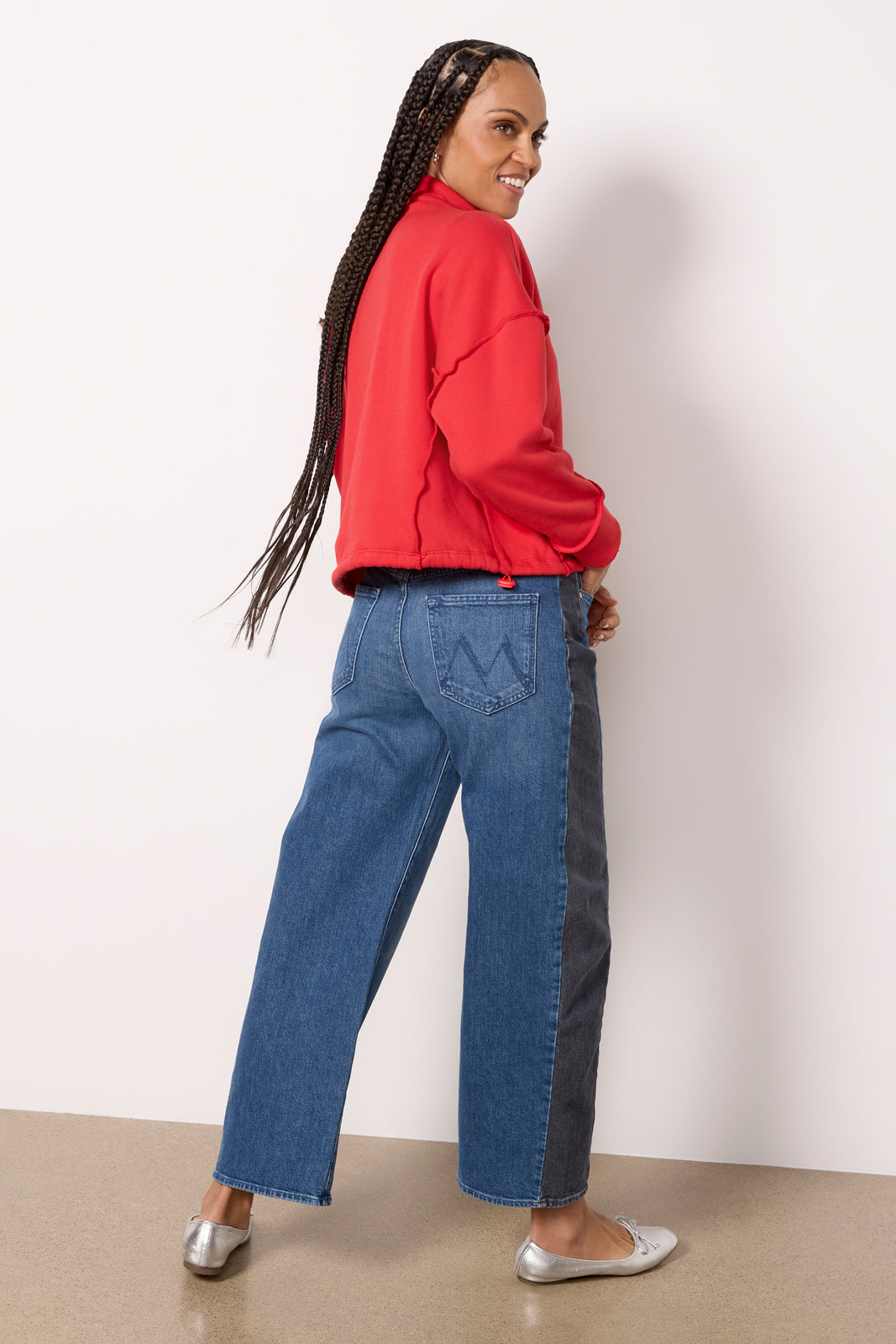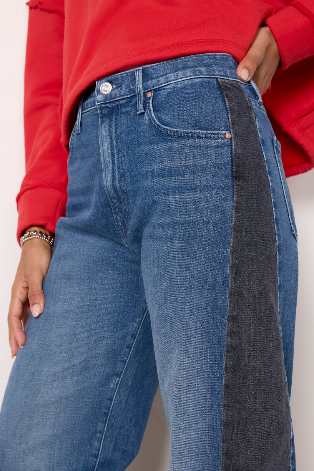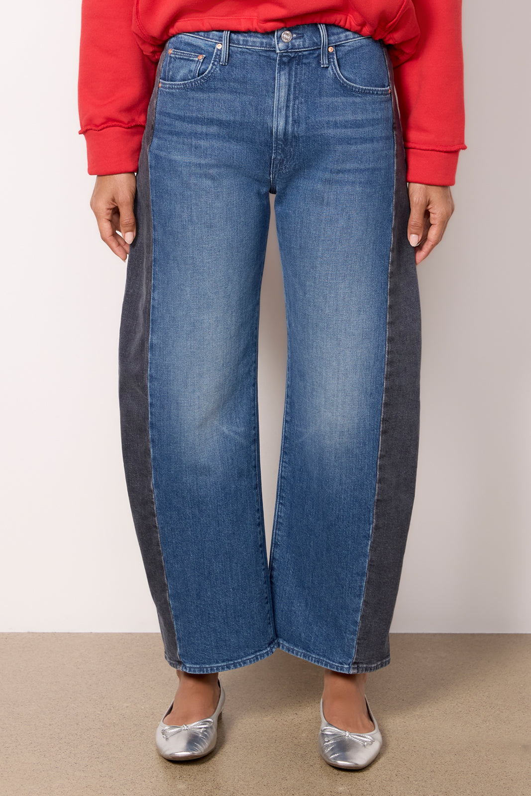 Update your denim collection with The Half Pipe Flood jean by MOTHER. These stylish barrel jeans feature a high-rise fit. curved leg. and?faded black side panels for a two-tone design.