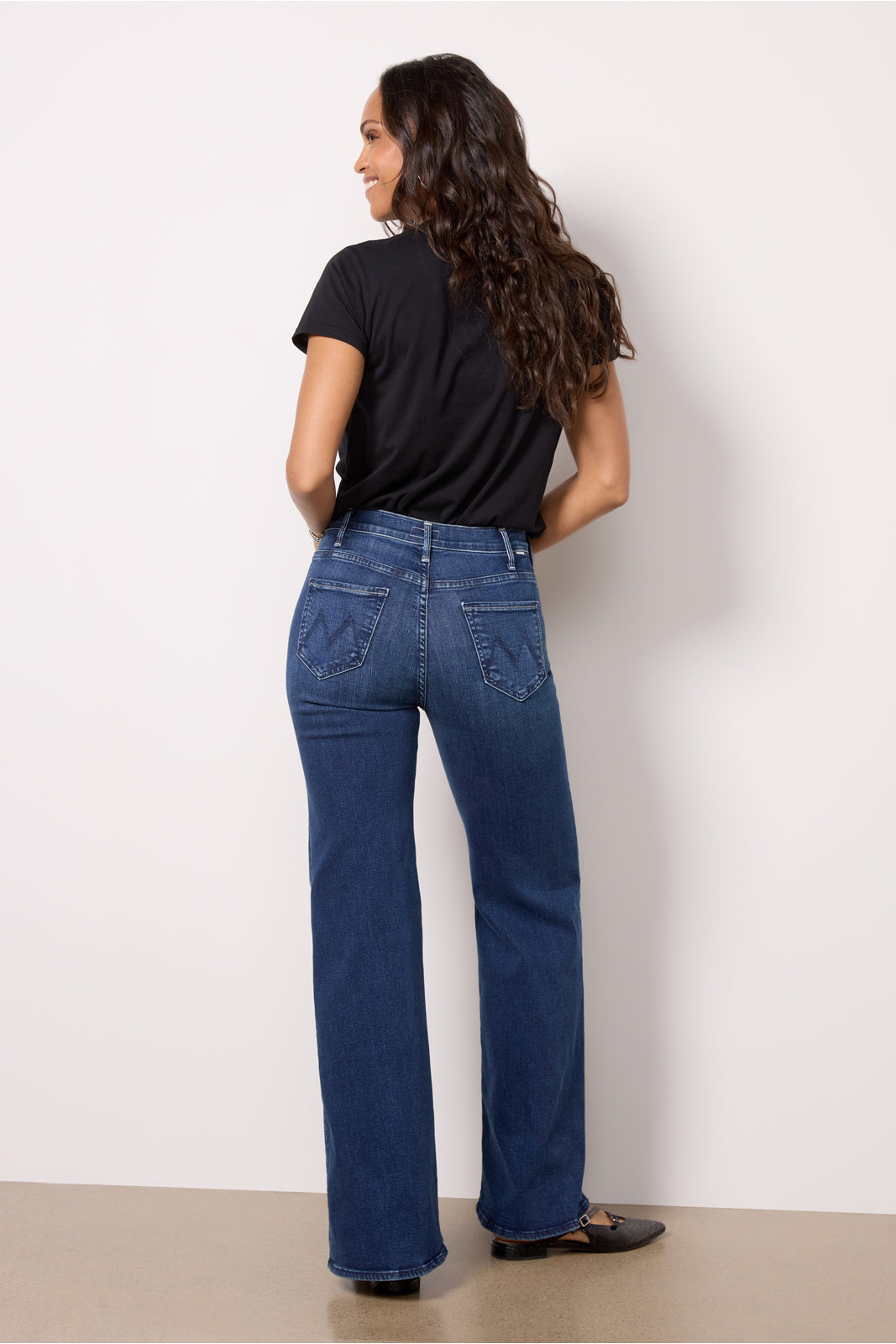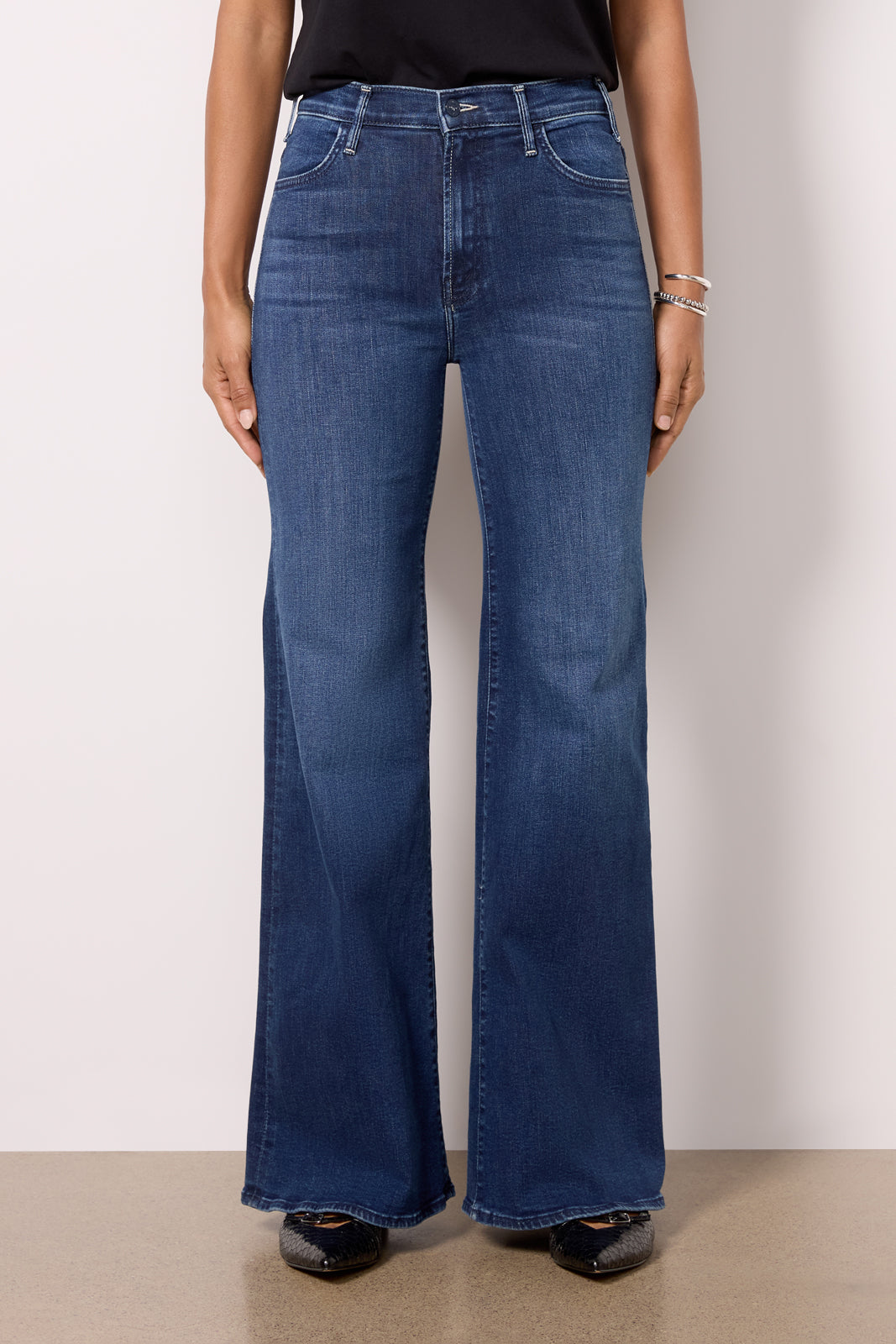 Elevate your denim?collection with these 70s-inspired wide-leg jeans?by?MOTHER. Cut from cotton-blend denim with a bit of stretch. these jeans?will be your new go-to?with all your favorite tees. blouses. jackets. and more.